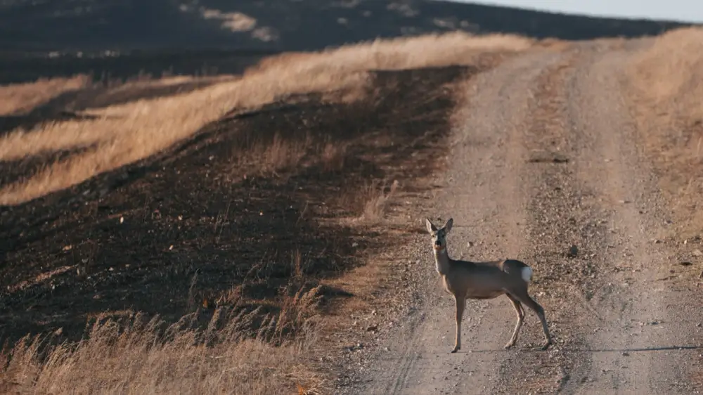 Еще вчера здесь было опасно находиться. Видим в степи косуль.