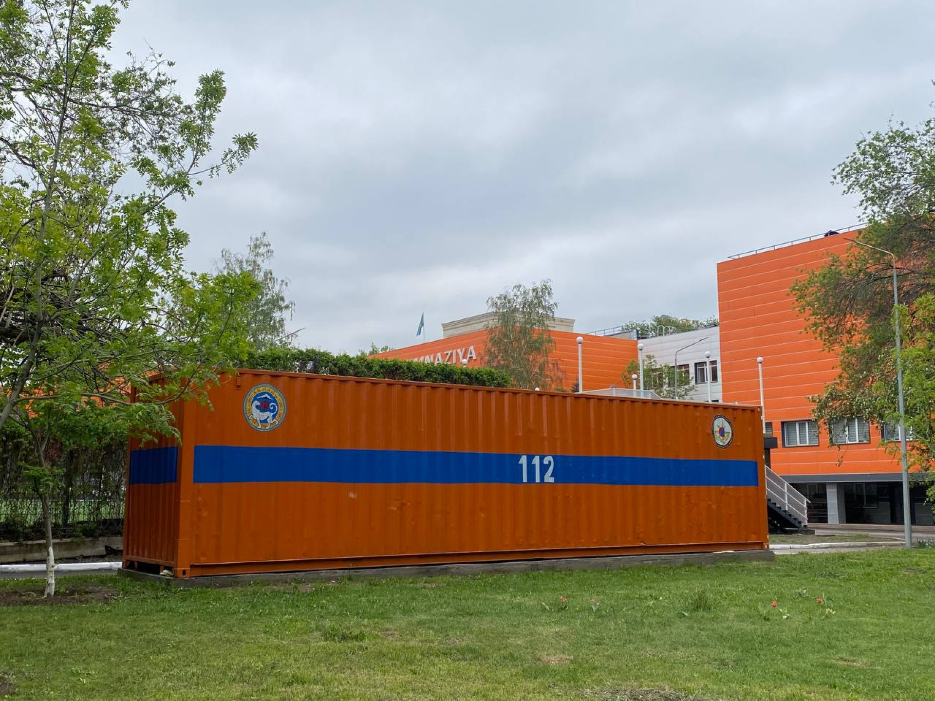 Это что-то вроде стационарных складов быстрого реагирования — если нужно развернуть пункты помощи для пострадавших. Их установили около алматинских пунктов сбора населения при ЧС. Горожане уже могли заметить их. К примеру, вот один из таких мобильных складов на территории школы в Турксибском районе: