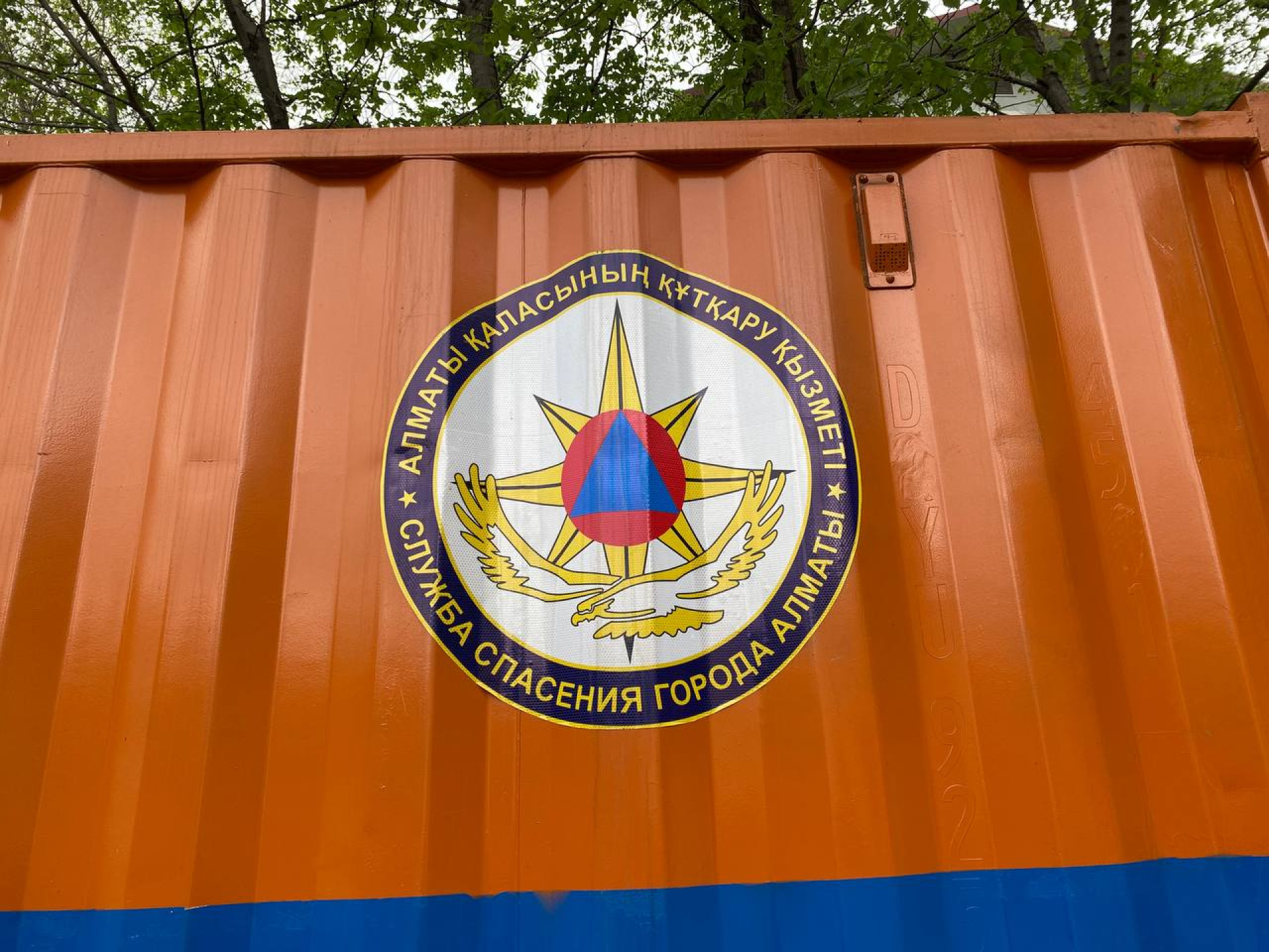 На каждый из них нанесён логотип акимата Алматы, а также службы спасения — сейчас это подведомство управления по территориальной обороне.