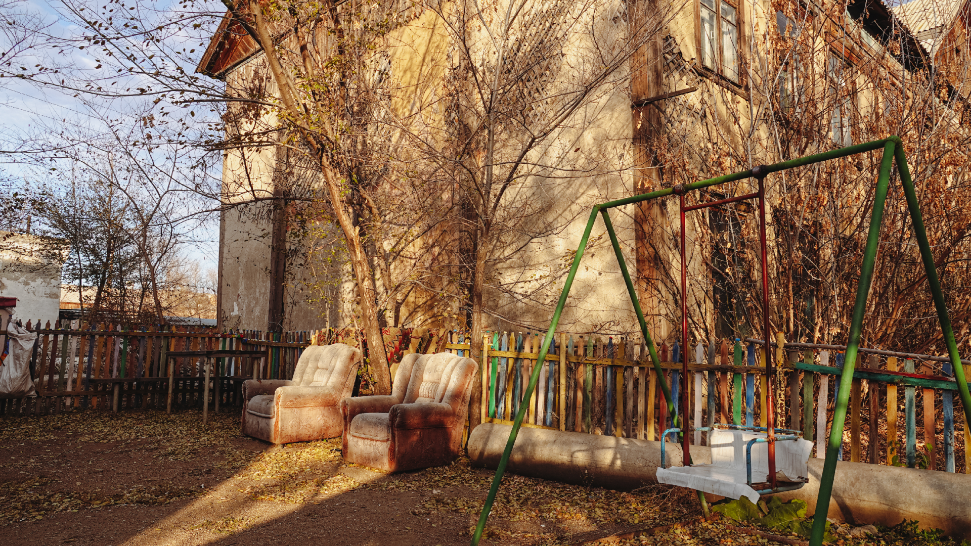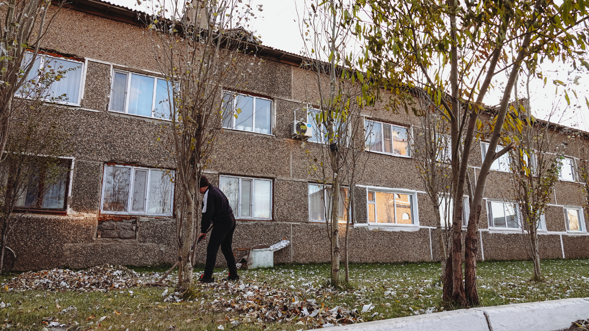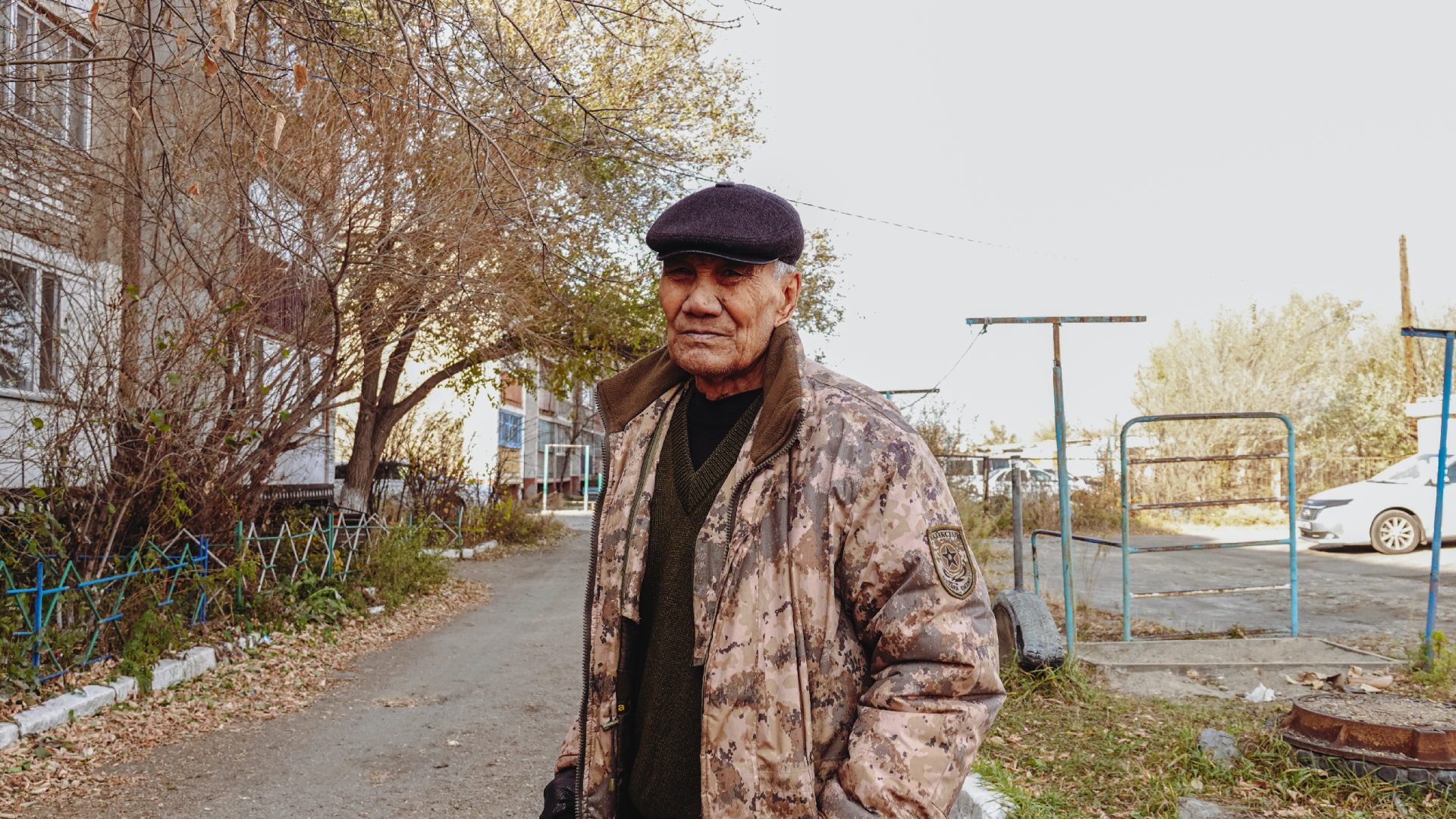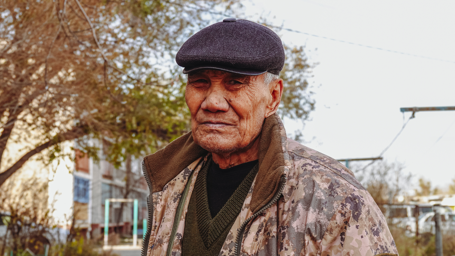 Мы сталкиваемся с Жапаром Дабыловым в тот момент, когда он выходит во двор своей трёхэтажки. В этот раз пенсионер идёт на прогулку, но частенько совмещает: пока дышит воздухом, заодно подметает у своего подъезда. И делает это не потому, что должен.