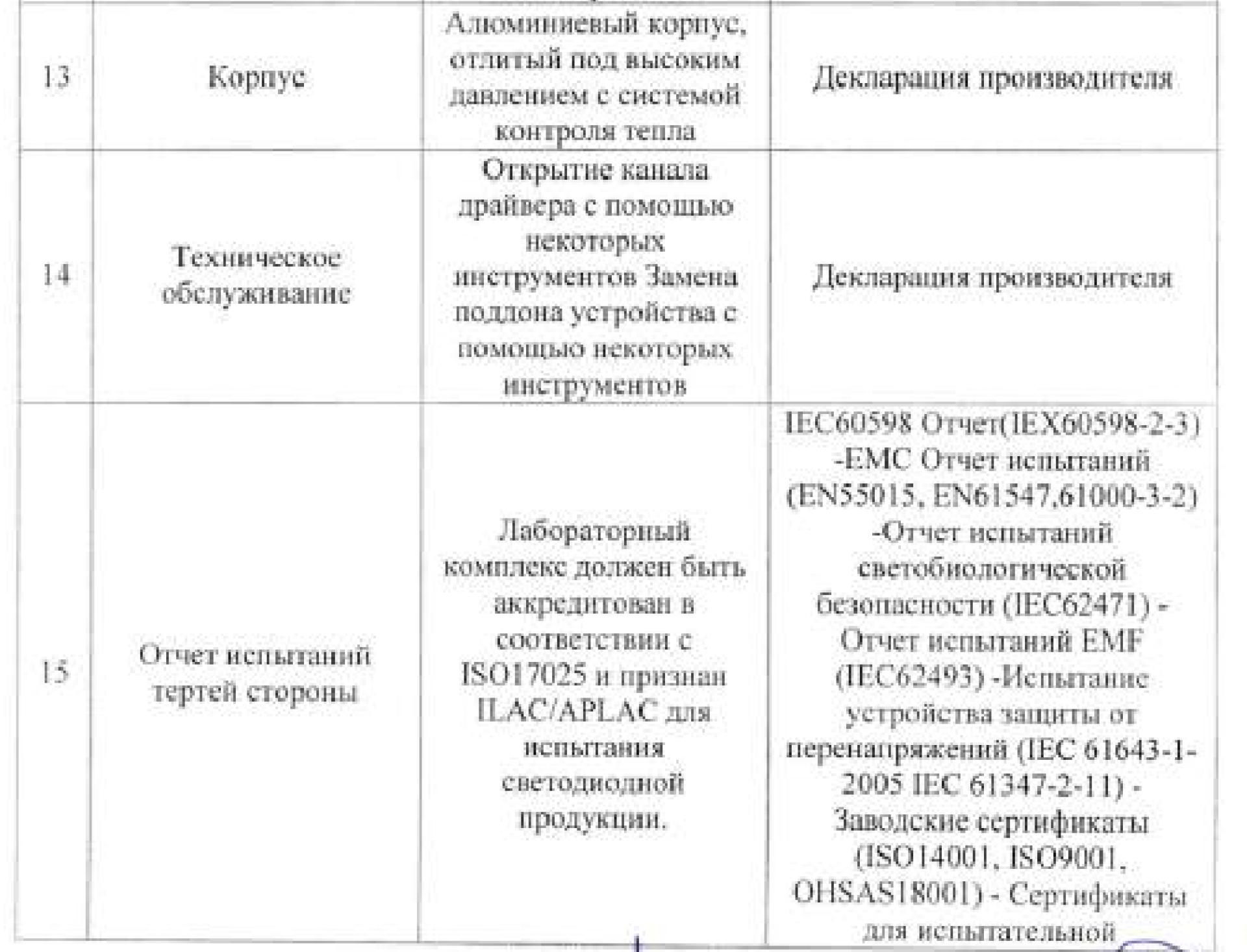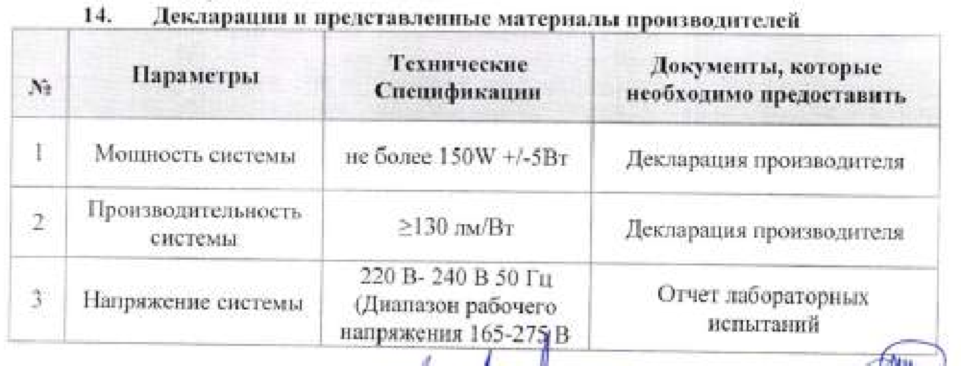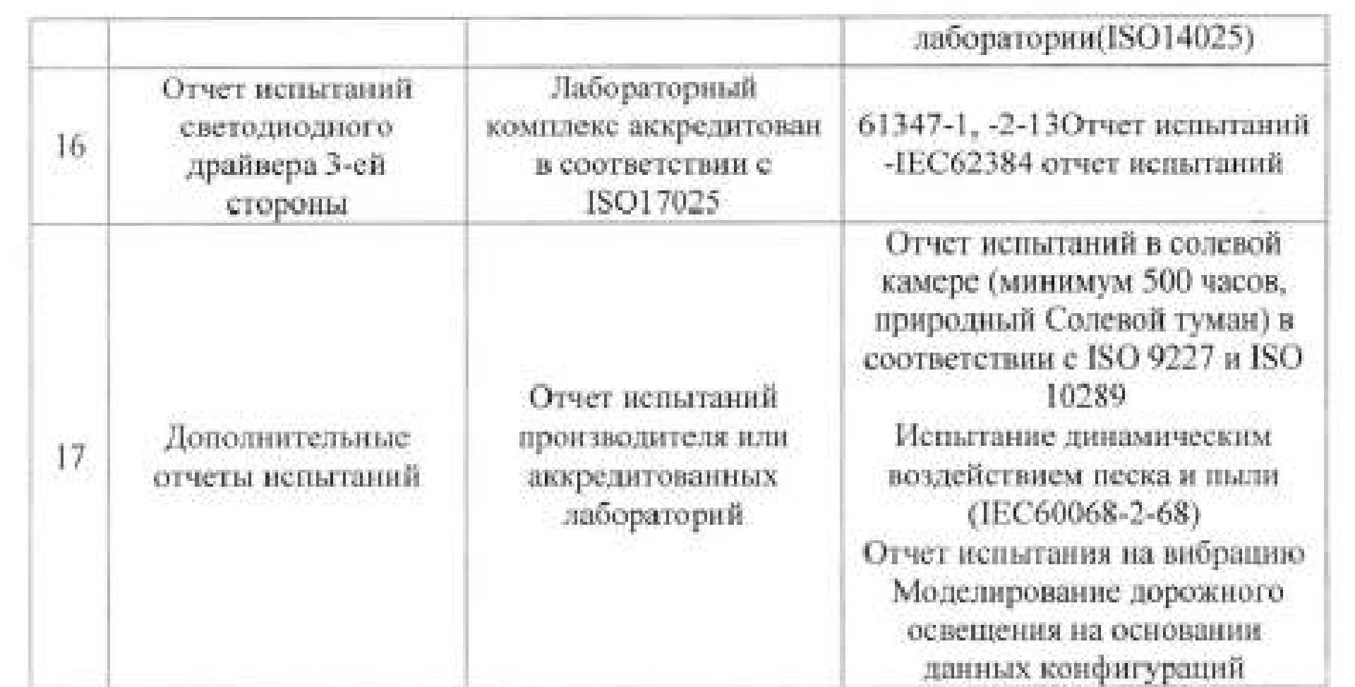 А также перед установкой потенциальному поставщику необходимо было предоставить не менее 17 деклараций, отчётов об испытаниях и сертификатов определённого стандарта, которые прописаны в отдельной таблице.