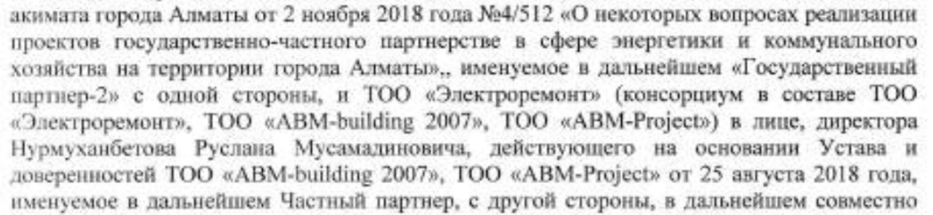 Ещё один момент, на который стоит обратить внимание, — сам договор ГЧП между консорциумом и властями Алматы, который оказался в нашем распоряжении.
