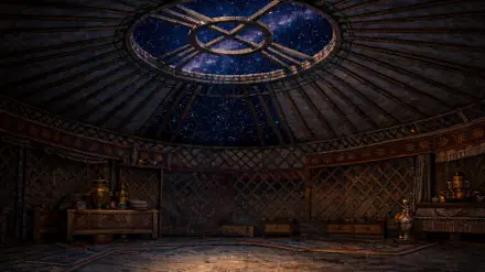 "Легенда о создании Гармонии из Хаоса, запечатленная в художественной форме во всех богатырских сказаниях, повторяется и в самой юрте: сборка и разборка её при перекочевках на другое джайляу символизировали наступление Хаоса и вновь создание Гармонии... Тундук, покрывающий шанырак, встречается во многих тюркских языках и их письменных памятниках в значении "окно", "ночь", "ось", "большое железное кольцо"... Таким образом, юрта была символом космоса и триединства Вселенной, символом освоенного пространства... Юрта была символом Мирового Древа, его копией".