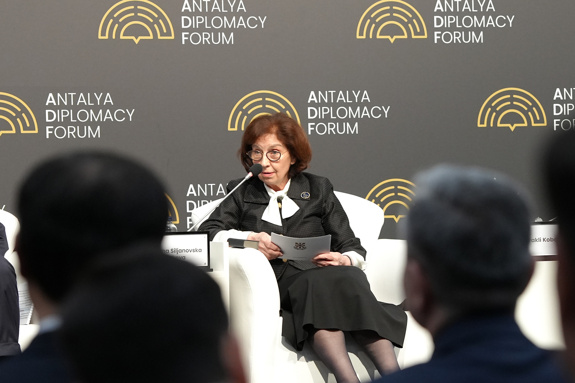 Другие участники панели говорили о своём. Президент Северной Македонии Силяновска-Давкова — про Балканы за пределами ЕС и женщину-генсека на посту ООН.