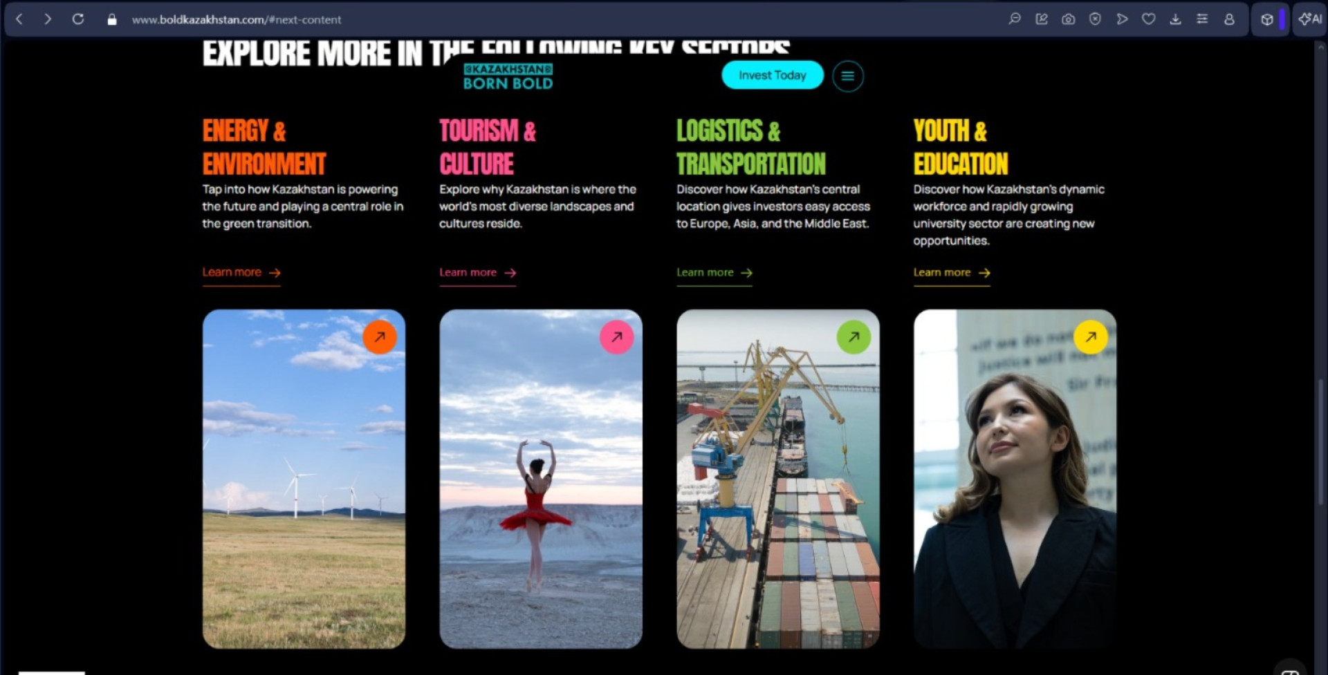 Все ссылки с официального сайта Kazakhstan: Born Bold ведут на государственный ресурс invest.gov.kz, который находится в управлении национальной компании Kazakh Invest. Единственным её учредителем является Комитет государственного имущества и приватизации при Минфине Казахстана.