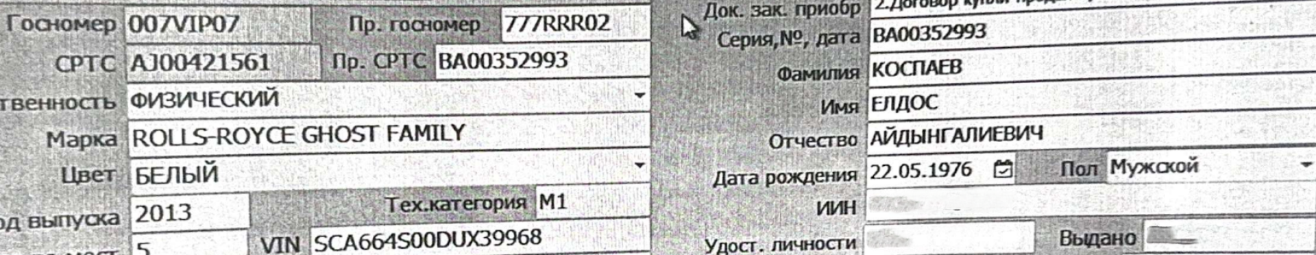 Судя по приложенным документам, владельцем Rolls-Royce числился лично Елдос Коспаев.