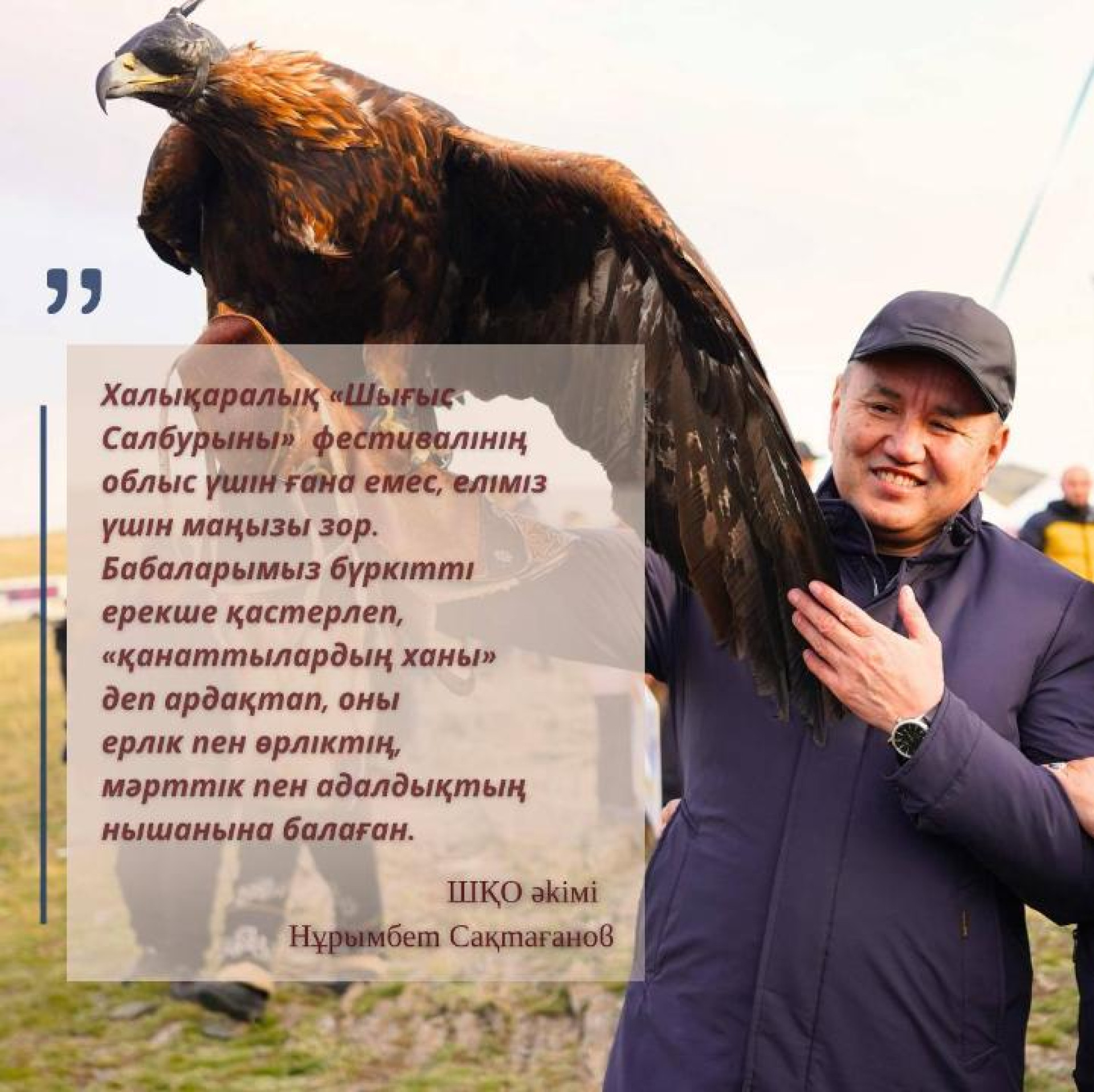 Сотрудники пресс-службы акима, видимо, были настолько вдохновлены его речью, что даже выложили на сайте акимата фото господина Сактаганова, держащего беркута на руке, а подписали яркий снимок его же цитатой: