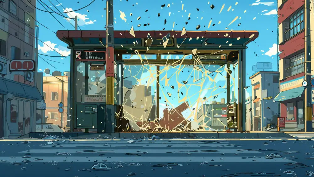 Разбитое стекло на остановке. Фото компании "РТС Деко"