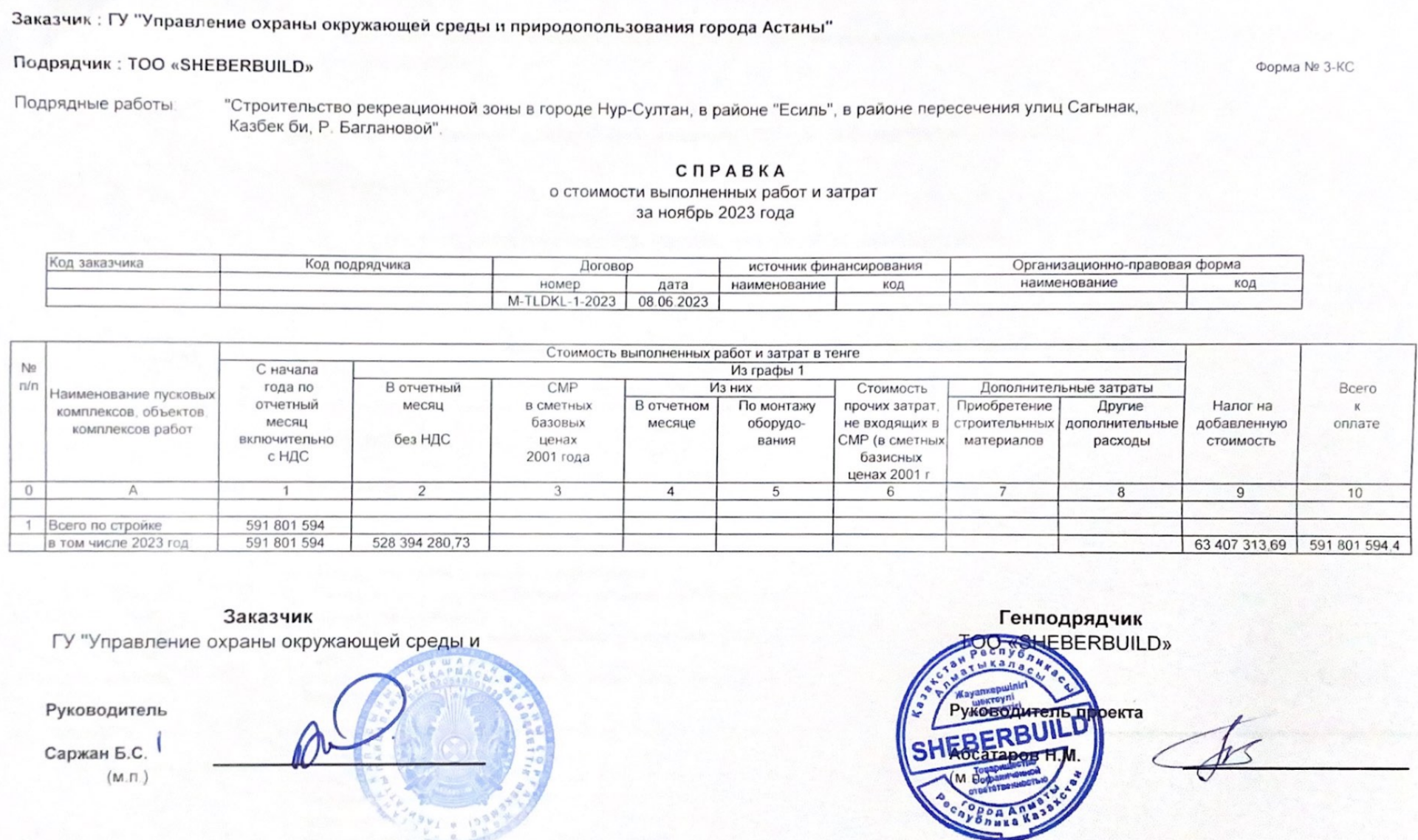 Однако в документах за ноябрь 2023 года указано, что компания выполнила работы почти на 591 миллион тенге.