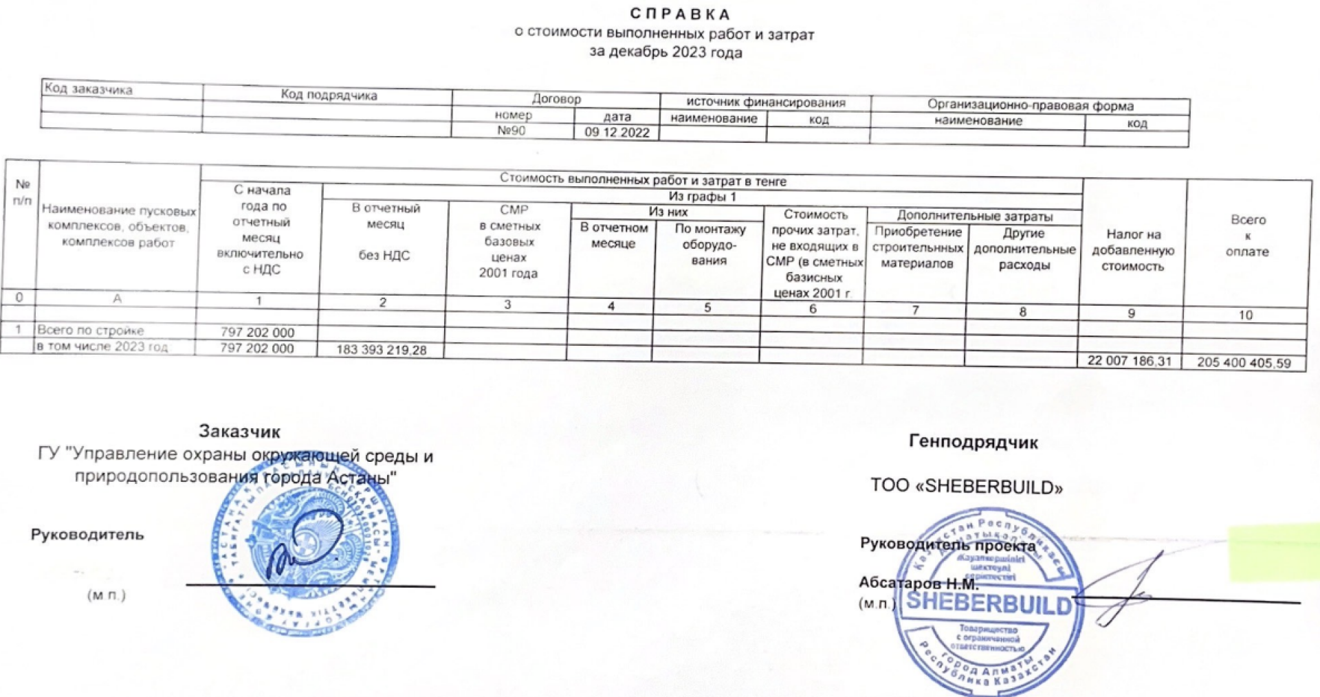 Это акты выполненных работ, которые уже подписаны двумя сторонами для получения оплаты. То есть как минимум 796 миллионов бюджетных тенге, судя по документам, подрядчику должны были выплатить.
