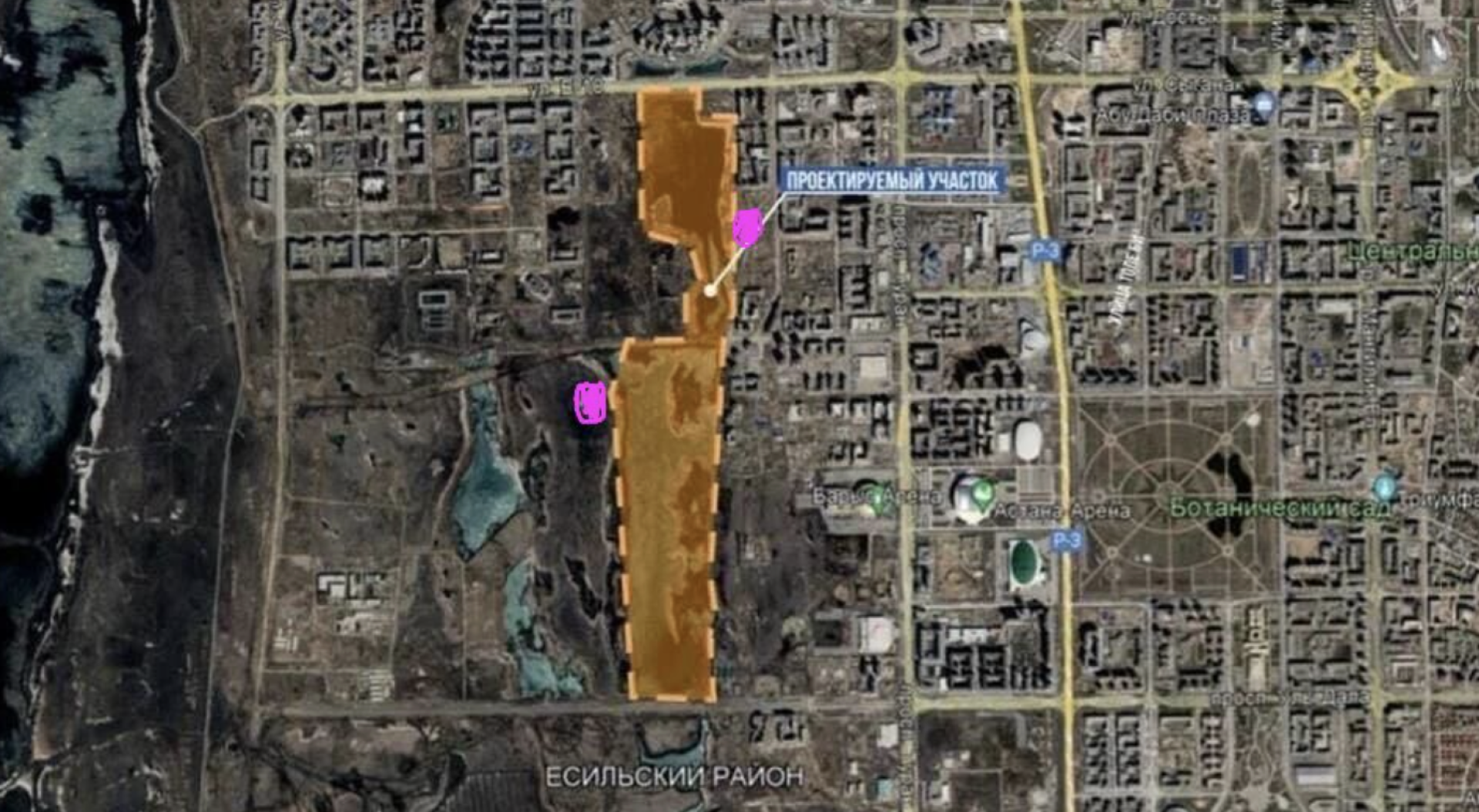 Это должен был быть первый в Астане природный парк с заповедной зоной. Его планировали разбить на участке №5 озера Малый Талдыколь и между двух исторических кладбищ — "Омар" и "Башан" (отмечены на фото ниже)