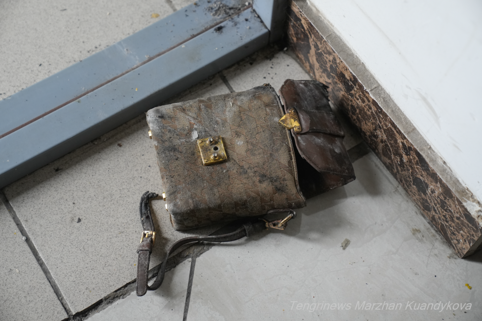 Обгоревшая сумочка лежит на этом же 15 этаже, недалеко от выхода на лестничную площадку. Фото: © Tengrinews.kz / Маржан Куандыкова