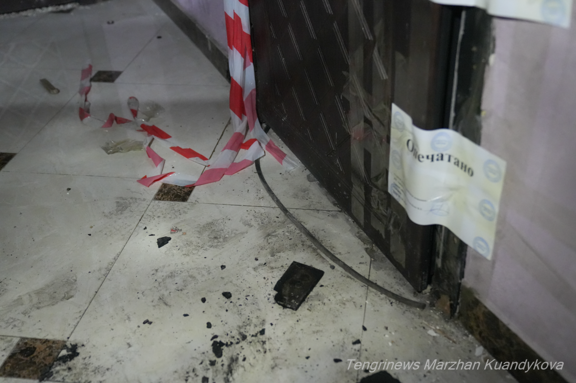 Дверь пострадавшей от пожара квартиры. Фото: © Tengrinews.kz / Маржан Куандыкова