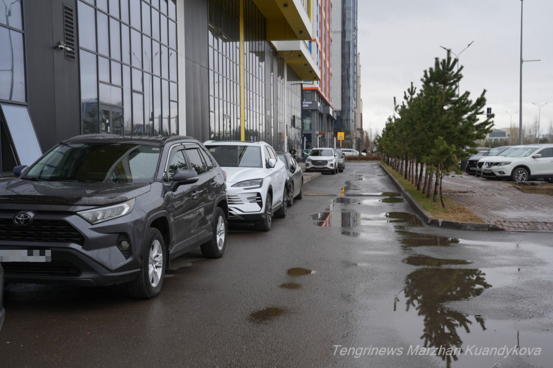 Парковка около жилого комплекса, где произошла трагедия. Фото: © Tengrinews.kz / Маржан Куандыкова