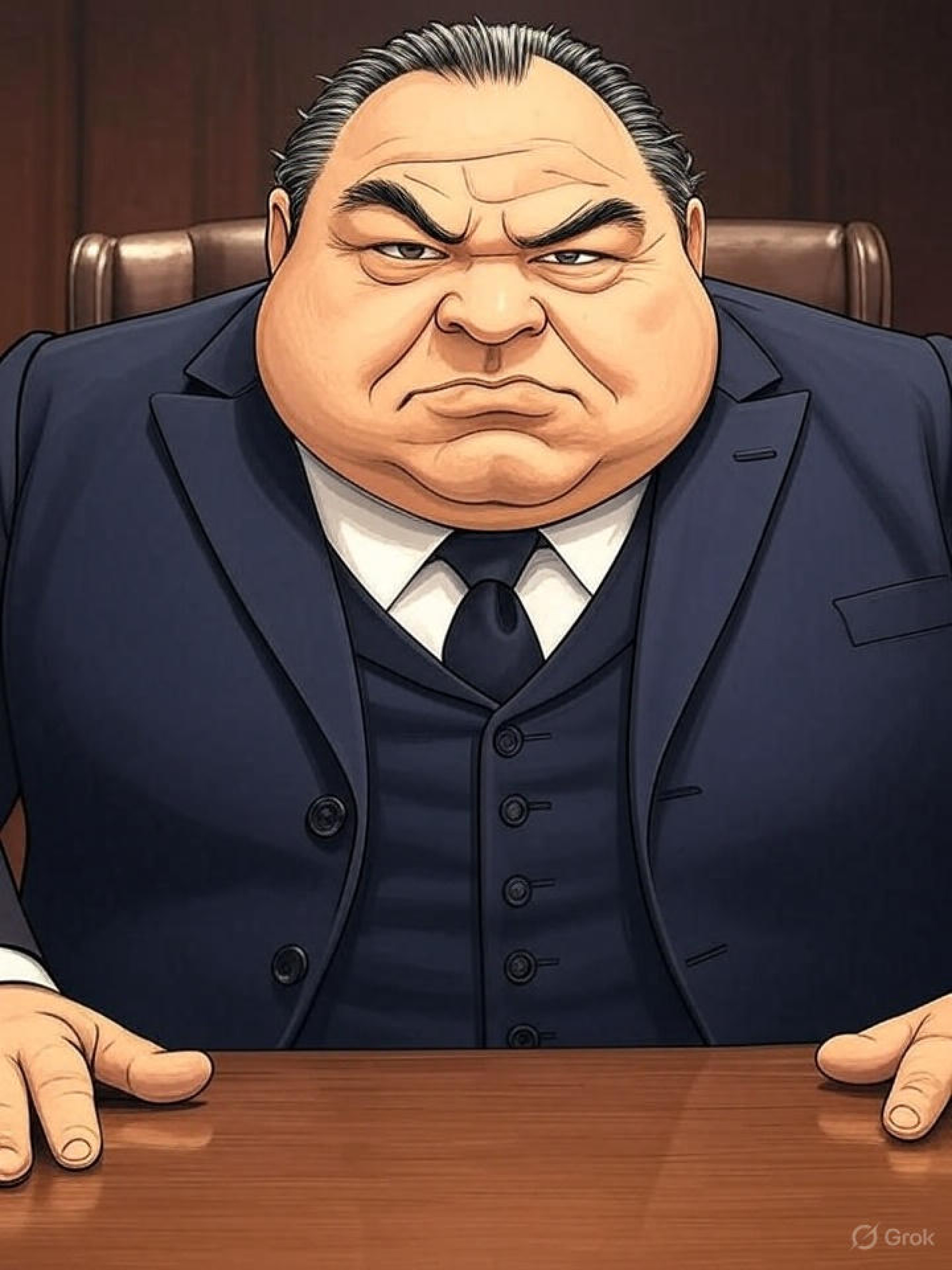 "Крёстный отец" с трудом натягивает улыбку даже во время приездов вышестоящего начальства, в результате чего получается жуткая гримаса. Своих подчинённых он подзывает к себе одним поднятием брови либо брезгливо-раздражительным: "Кiм..." ("Как тебя там...").