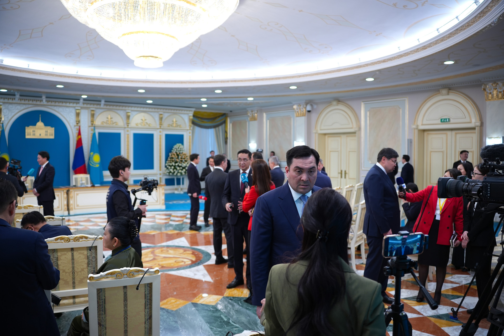 После переговоров Казахстан и Монголия обменялись 13 документами. Но перед самим обменом произошла сцена, какой мраморный зал Акорды, похоже, ещё не видел.