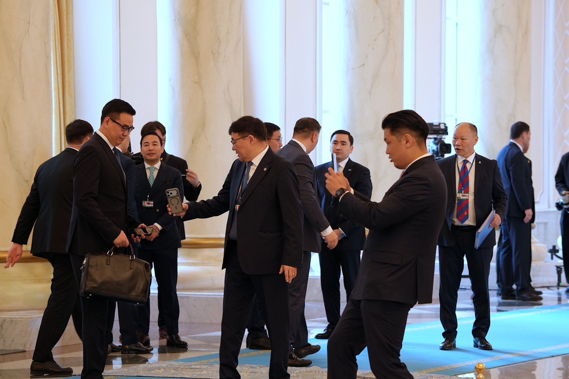 В Акорде появляется делегация из Монголии. Теперь фотографируются все: монгольские журналисты, казахстанские журналисты, члены делегации.