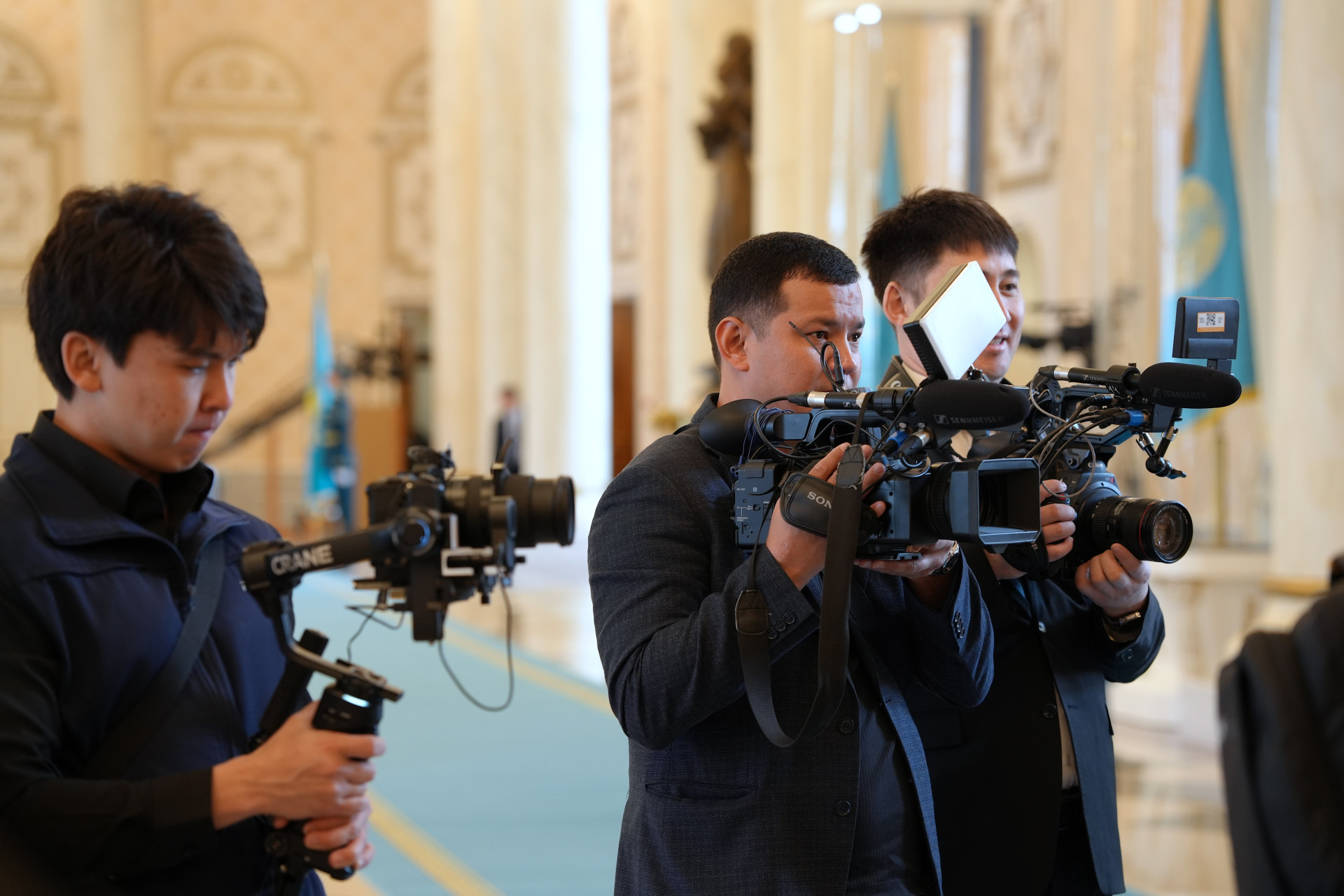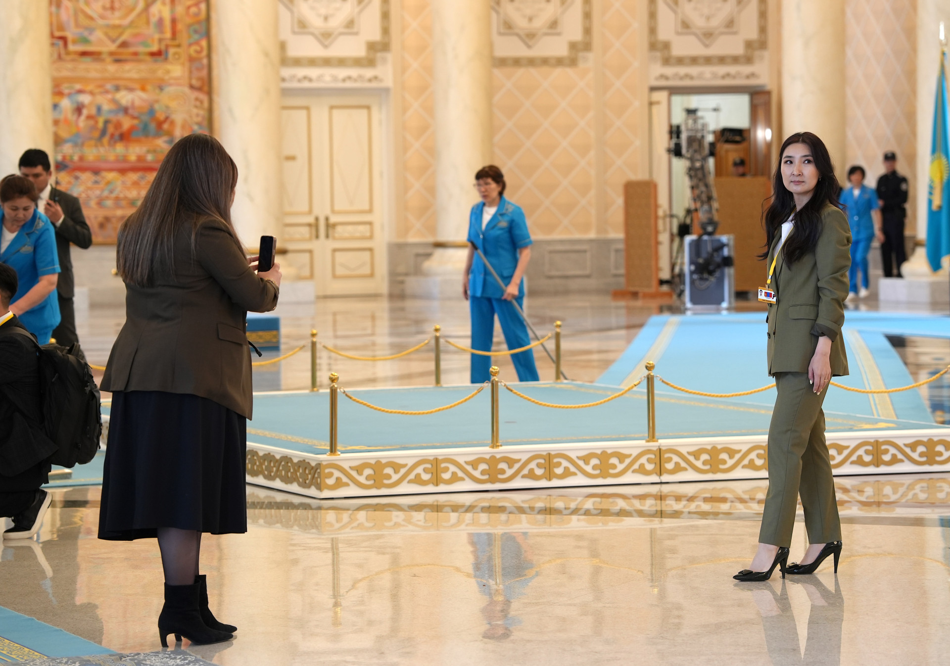 Президента Монголии ещё нет у дверей Акорды, так что есть время оглядеться. Первое наблюдение: монгольских журналистов много, и все фотографируются.