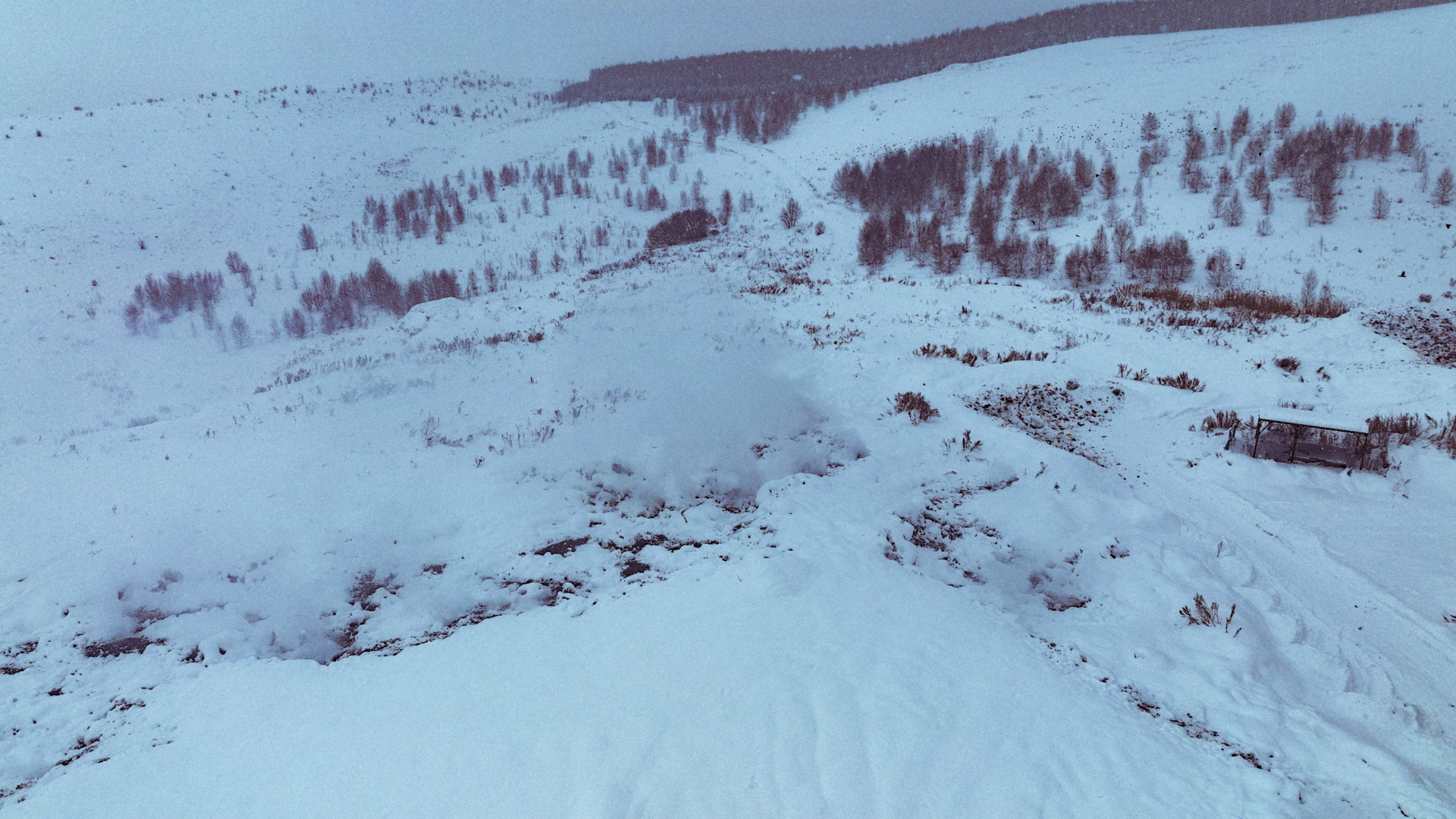 Горит свалка и сегодня. Сейчас она красиво присыпана снегом. Однако дым всё равно прорывается через кучи отходов и направляется в сторону города.