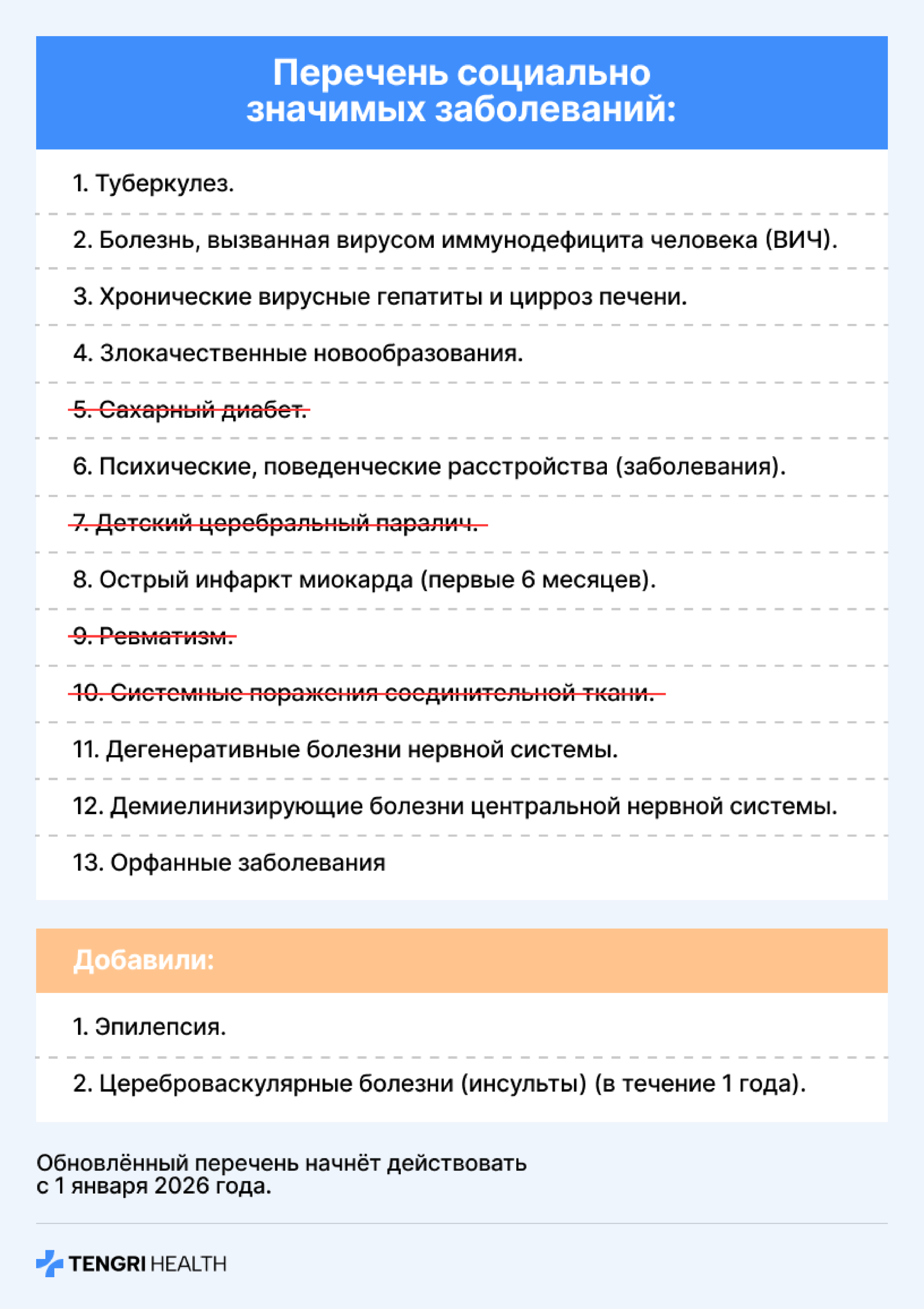 С 1 января 2026 года в список социально значимых заболеваний не входят: