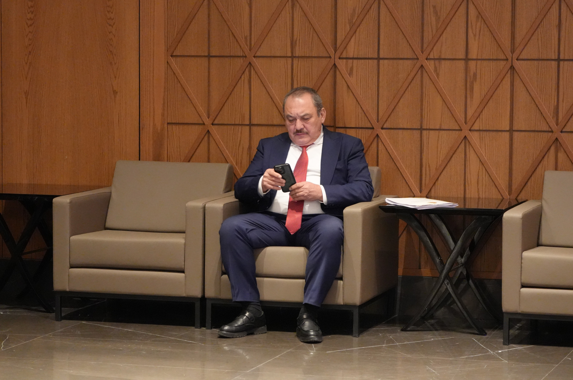 Среди моря белых свитшотов сидел человек в костюме. Это заместитель главы МВД Игорь Лепёха.