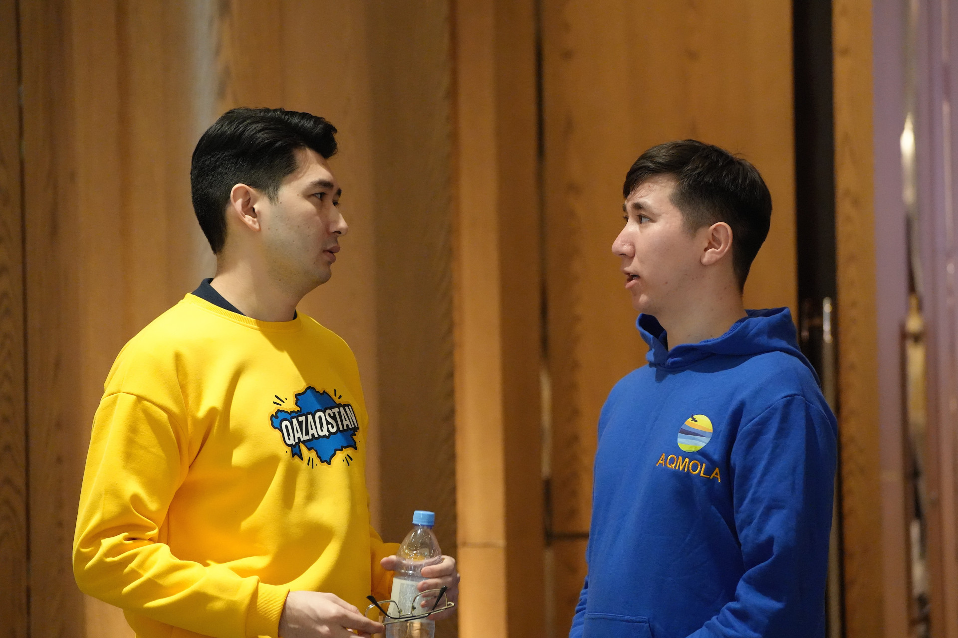Разговор завязывается легко. Парень в синем, Ербол, оказался координатором по развитию волонтёрства на севере: Кокшетау, Костанай, Петропавловск, Павлодар. Он приехал с делегацией из Акмолинской области.