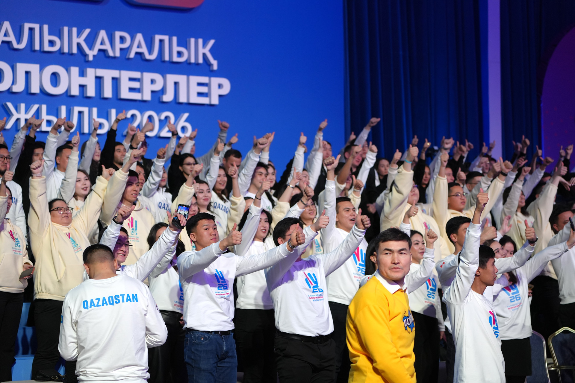 Большинство в жилетках и худи (худи — именно так и никак по-другому в случае с зумерами и миллениалами) с надписью Qazaqstan. Везде число 26. Всё потому что 2026-й год ООН объявила международным годом волонтёров. По инициативе Казахстана, о чём, конечно же, здесь не забывают напоминать.