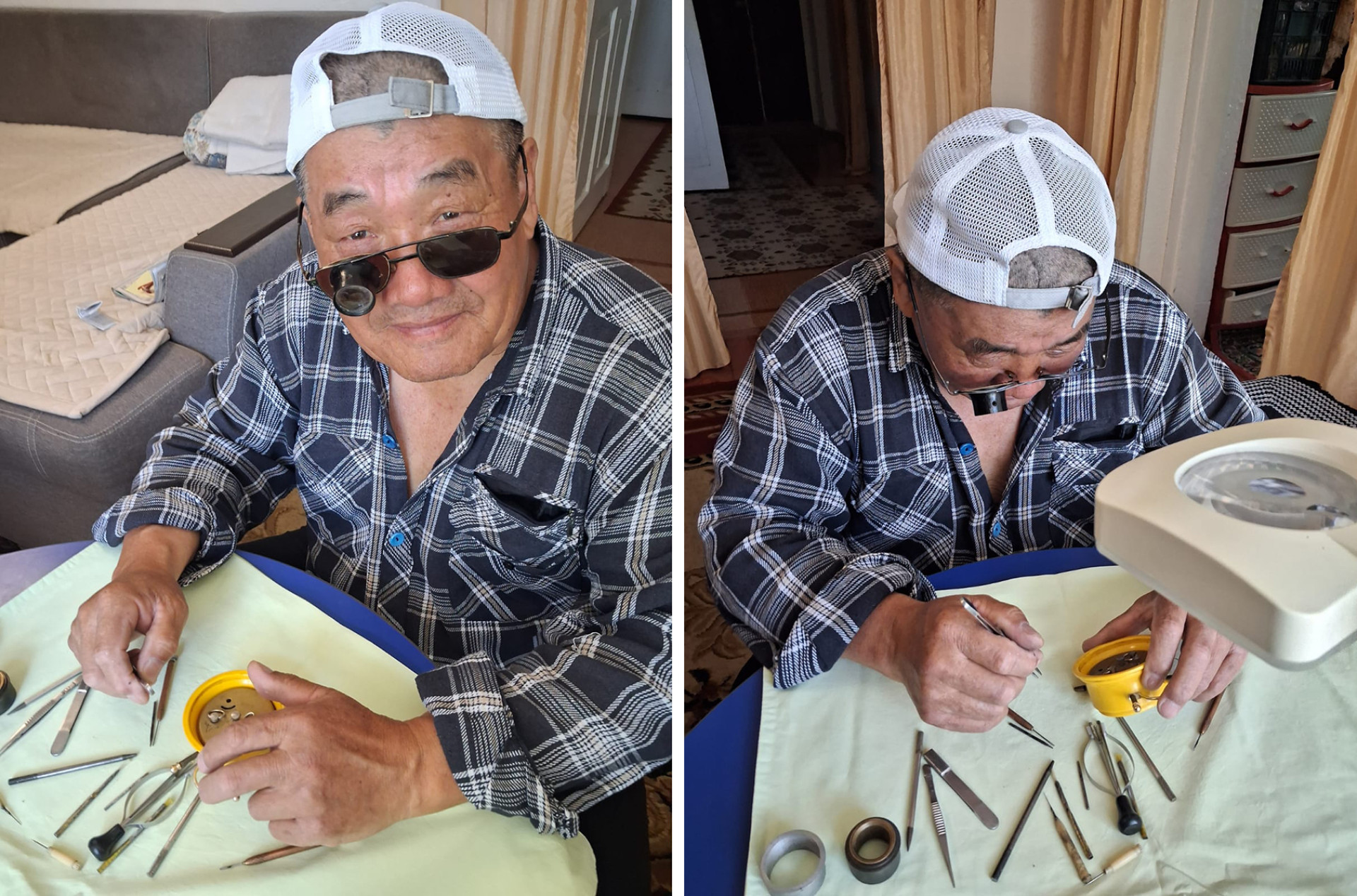 "Я по специальности топограф, то есть чертил карты топографические. Это очень мелкая работа, очень тонкая работа. И вот этот навык пригодился при ремонте часов, потому что там детали очень тонкие", — сравнивает он.
