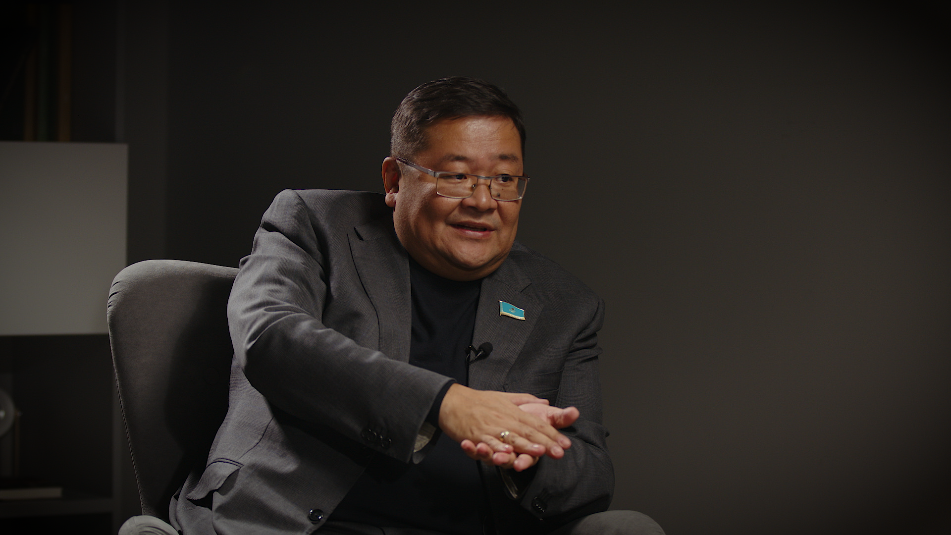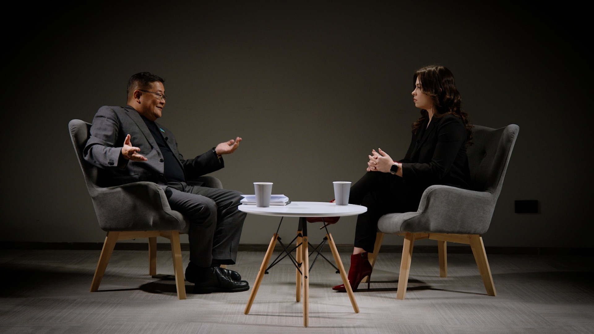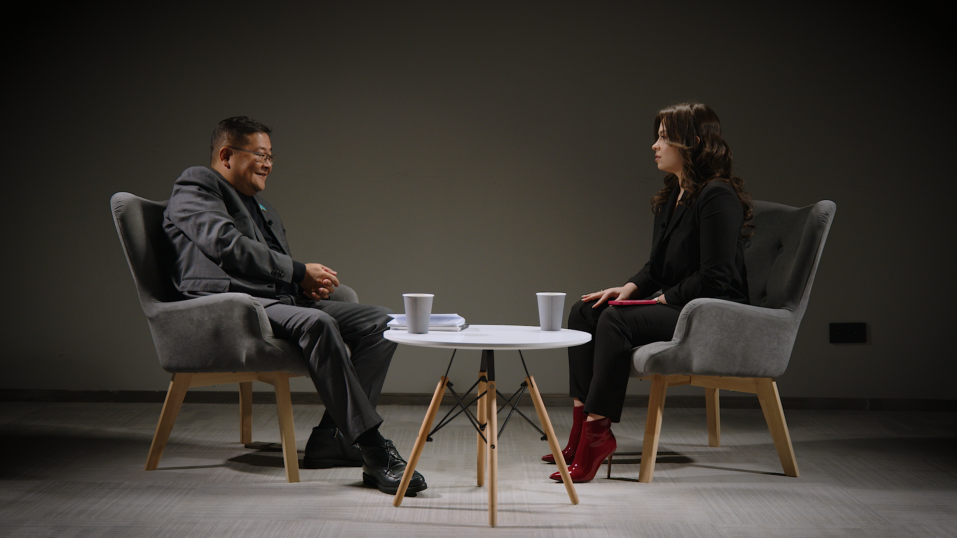 Депутат Мажилиса Айдос Сарым и корреспондент Елизавета Аксенова. Фото: ©️ Tengrinews.kz / Роман Павлов