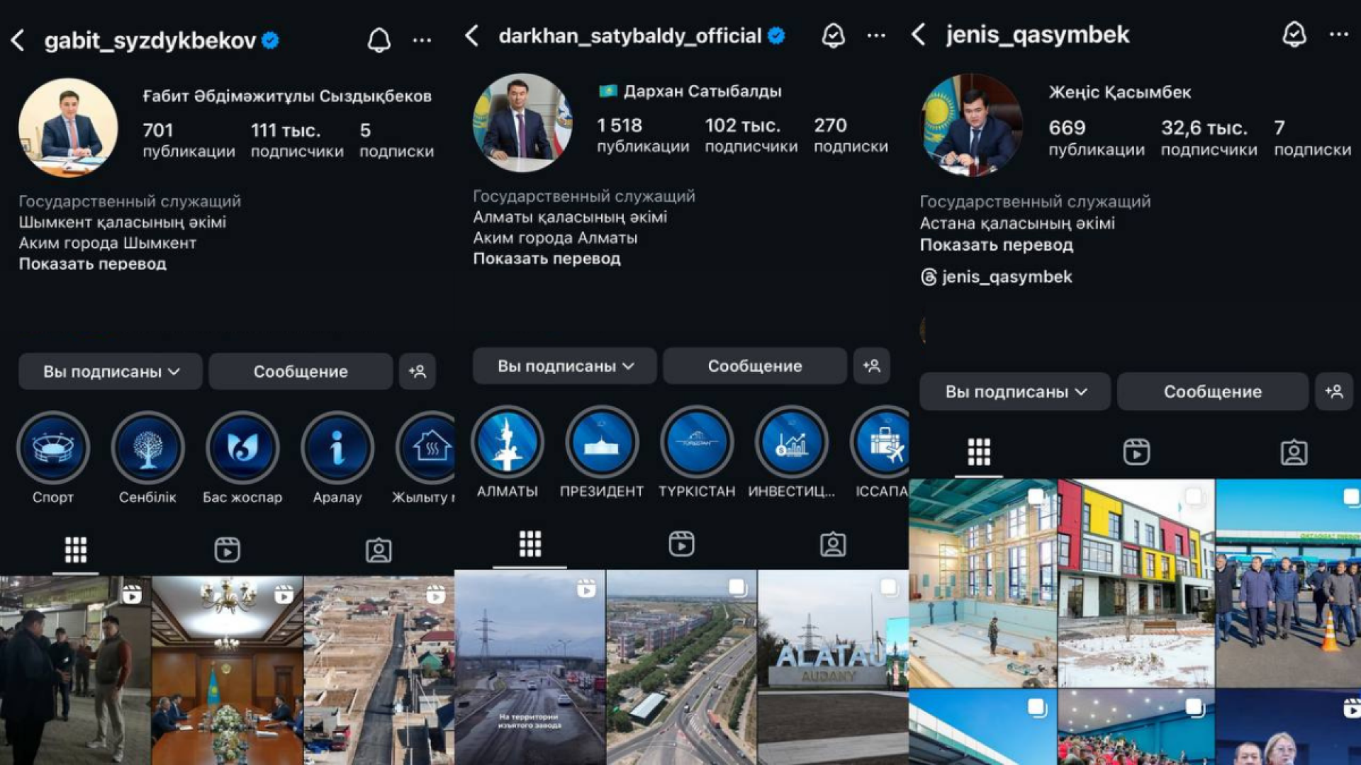 Среди акимов мегаполисов Казахстана по размеру аудитории он почти приблизился к главе Шымкента Габиту Сыздыкбекову (111 тысяч подписчиков) и в три раза обогнал акима столицы Жениса Касымбека (32 тысячи подписчиков).