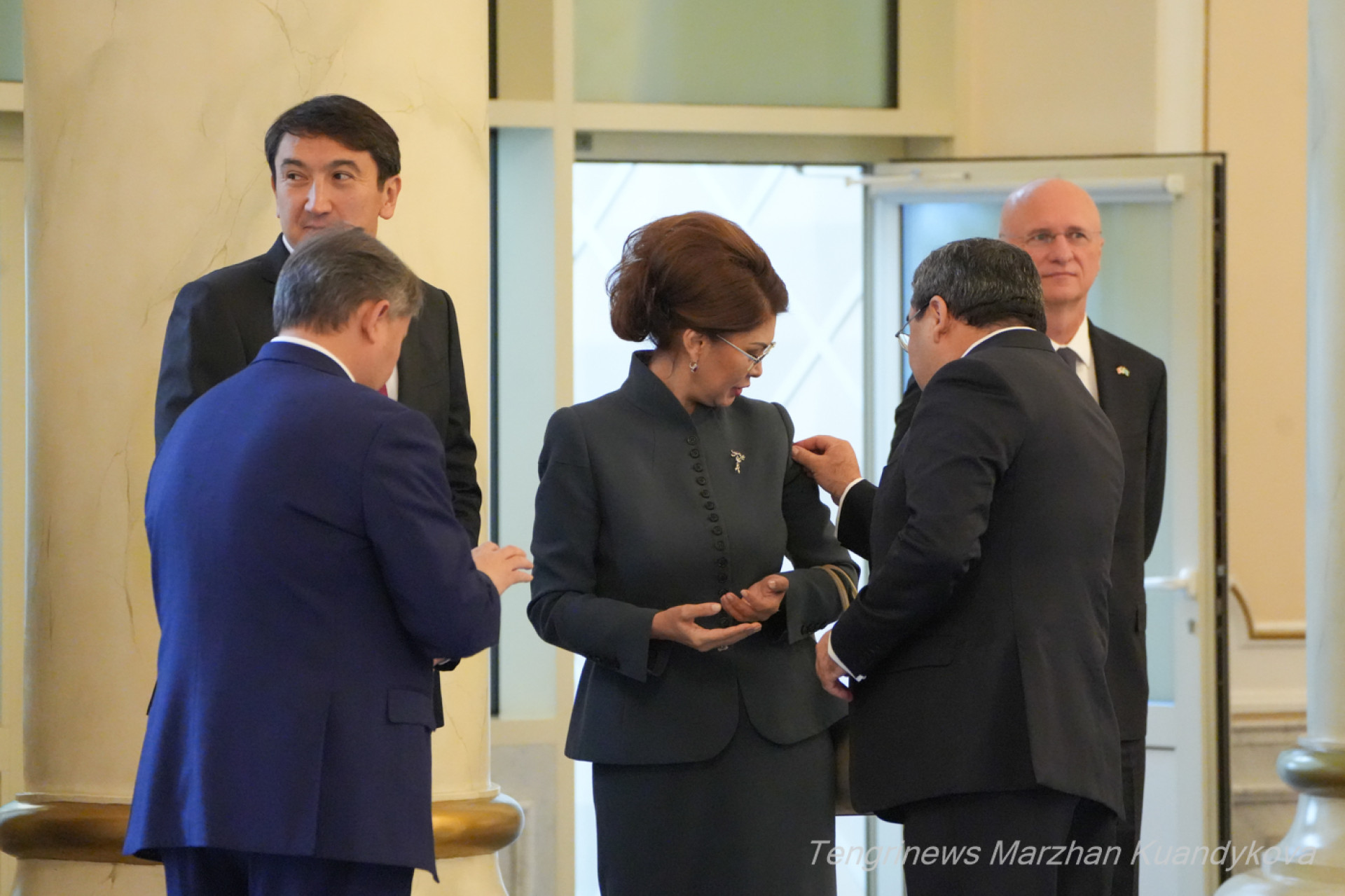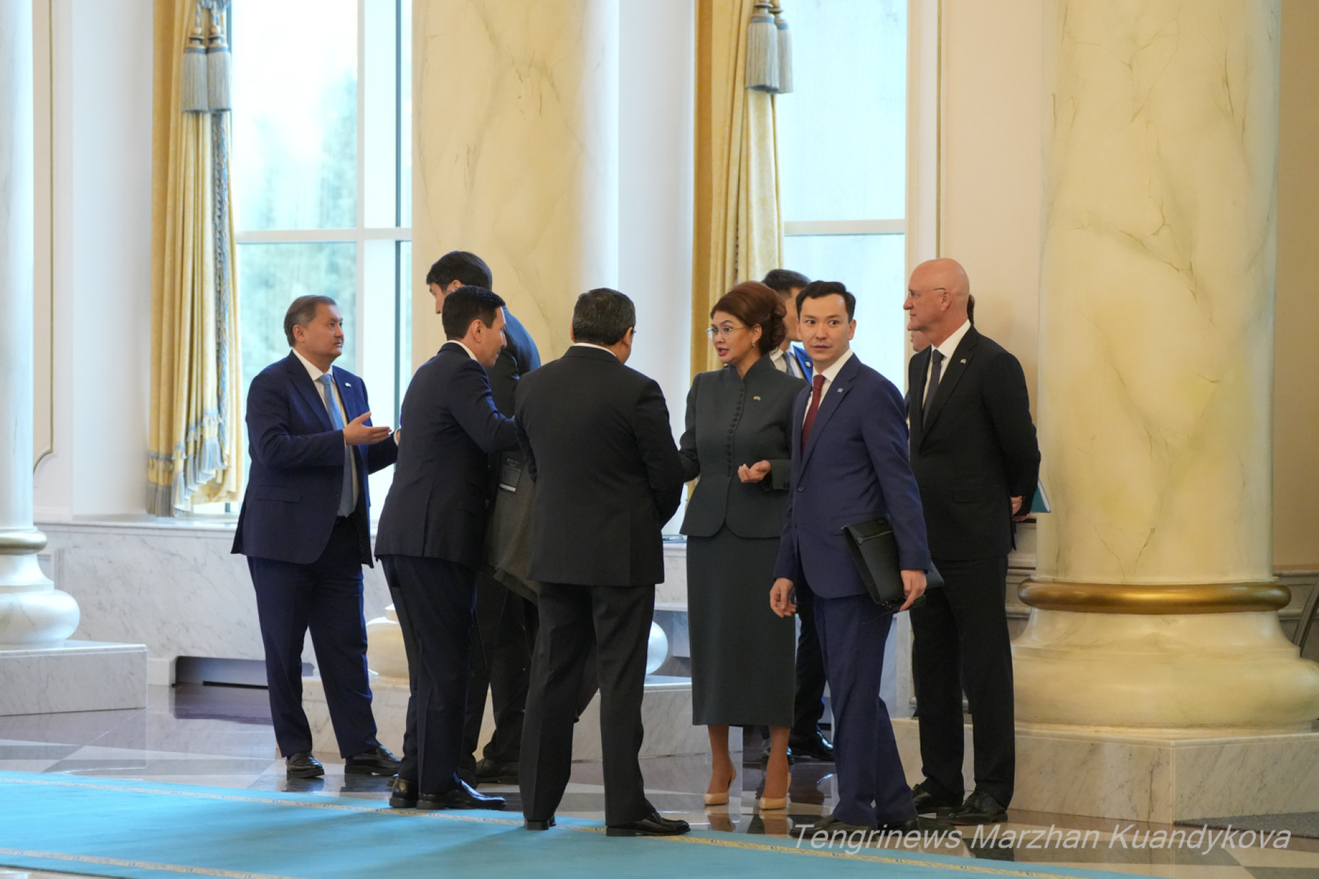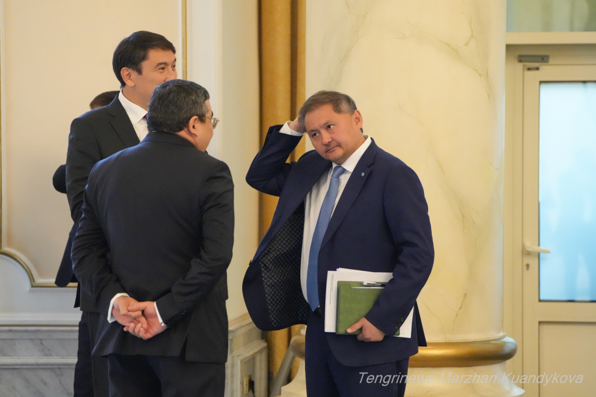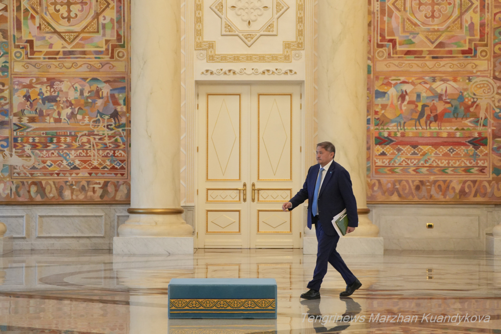 Уже бывший министр иностранных дел Мурат Нуртлеу спустился в холл сверху по большой лестнице. Помощник Президента выглядел спокойным, можно сказать, даже в приподнятом настроении.