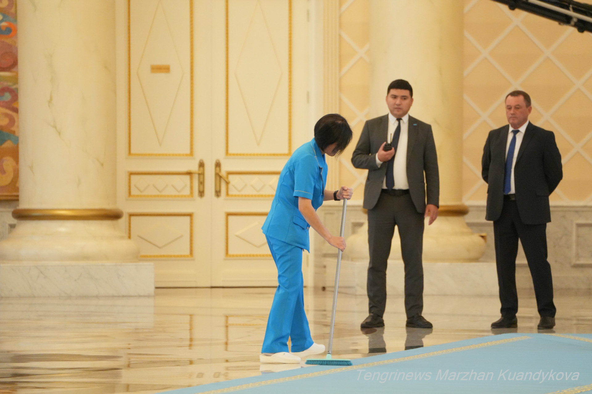 Два часа до прибытия кортежа президента Италии в Акорду. Казахстанская сторона готовится к приему гостей. Почетный караул репетирует построение. Сотрудники техслужбы готовят холл.