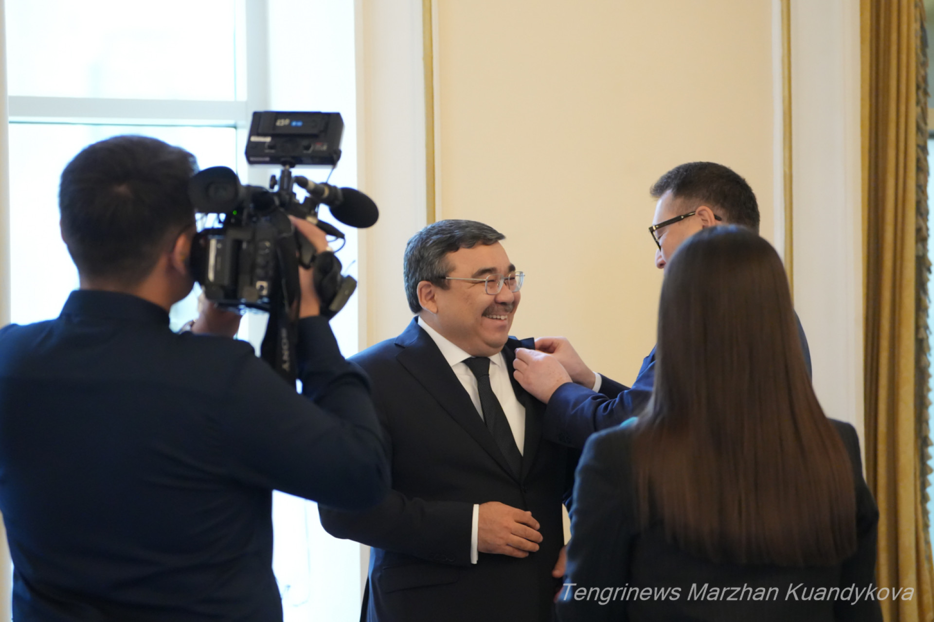 Жаслан Мадиев, как и его коллеги, которых коснулись перестановки, был в центре внимания. Журналистам, правда, уделить время он не смог, сказав, что спешит по делам.