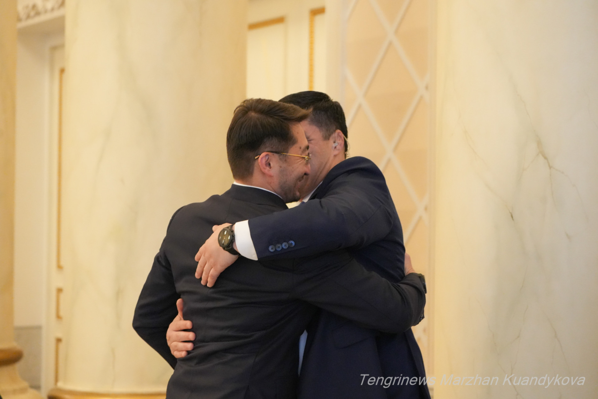 Вот тут Мурат Нуртлеу о чем-то говорит с Жасланом Мадиевым. И, может быть, поздравляет его с повышением. Ведь тот теперь не просто министр искусственного интеллекта, но ещё и заместитель премьера.