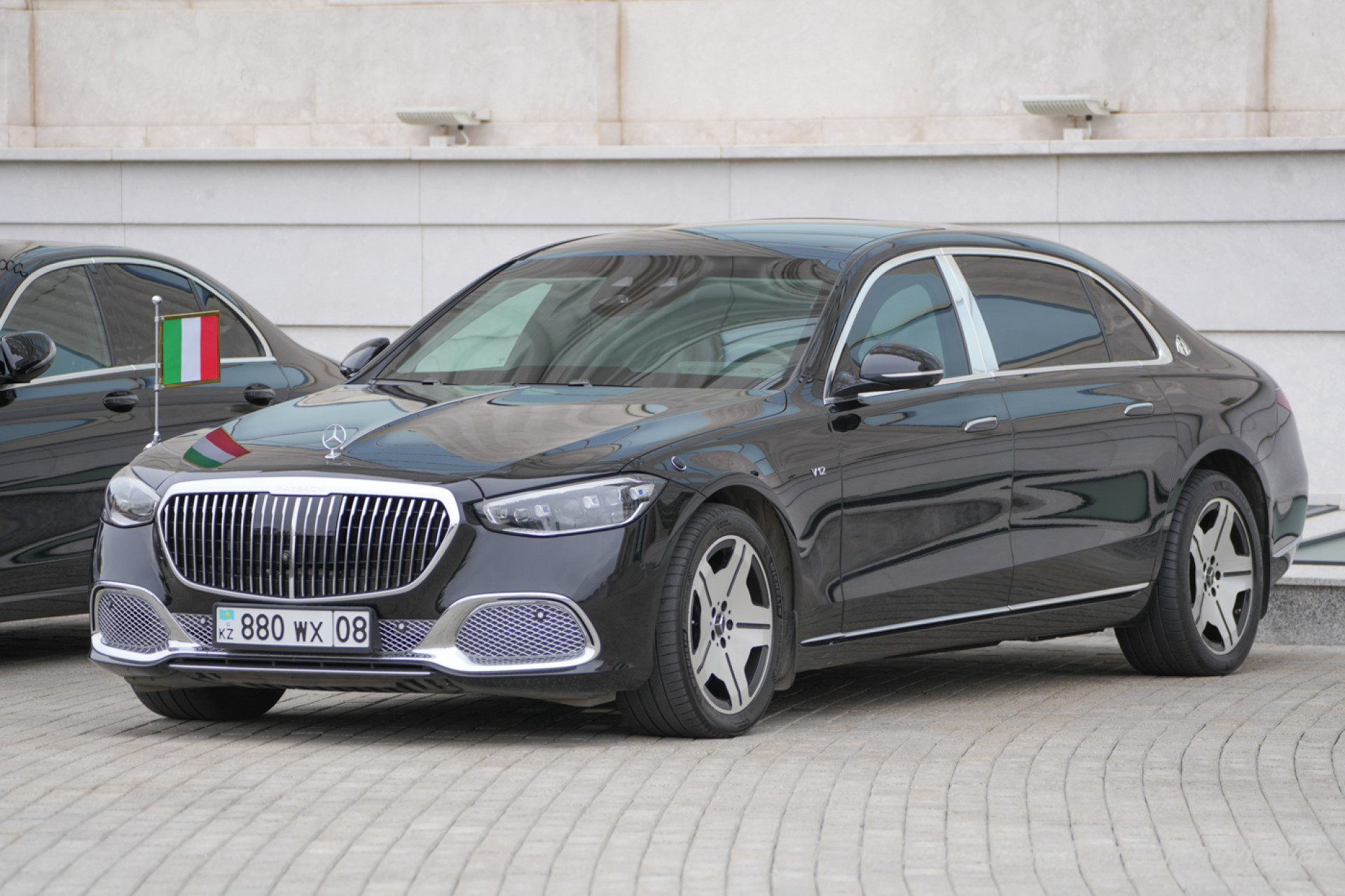Серджо Маттарелла приехал на Mercedes-Benz Maybach с итальянским флагом.