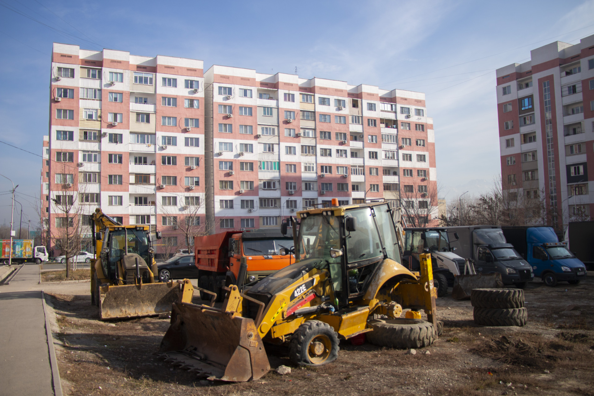 В Зердели можно встретить и множество строительной техники. По ощущениям, она бездействует. Одна из таких машин и вовсе выглядит брошенной. Окна у неё открыты, одно из колёс снято: