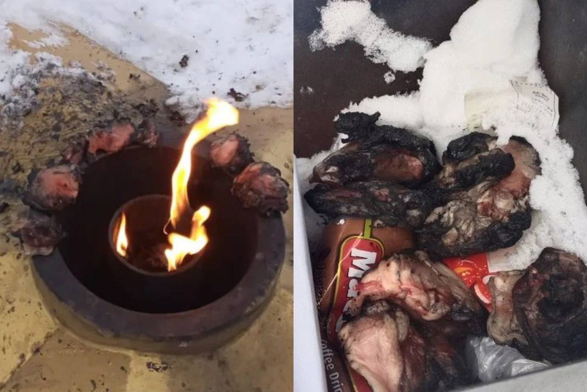 А случилась с памятником не очень приятная история. 31-летний местный житель... пожарил на огне курицу! За это он получил пять суток ареста.