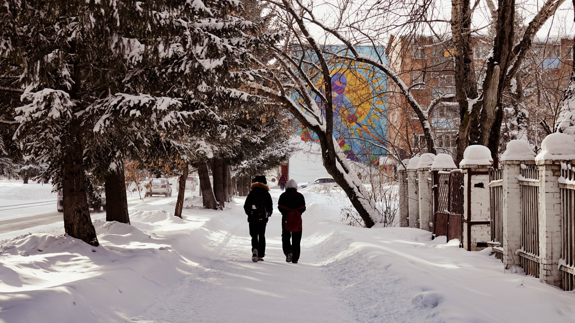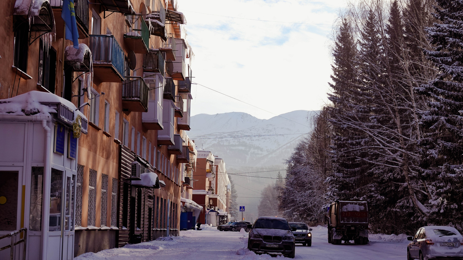 Изучаем Риддер дальше. Когда проходим рядом с многоэтажками, жители города просят нас идти поодаль от стен.