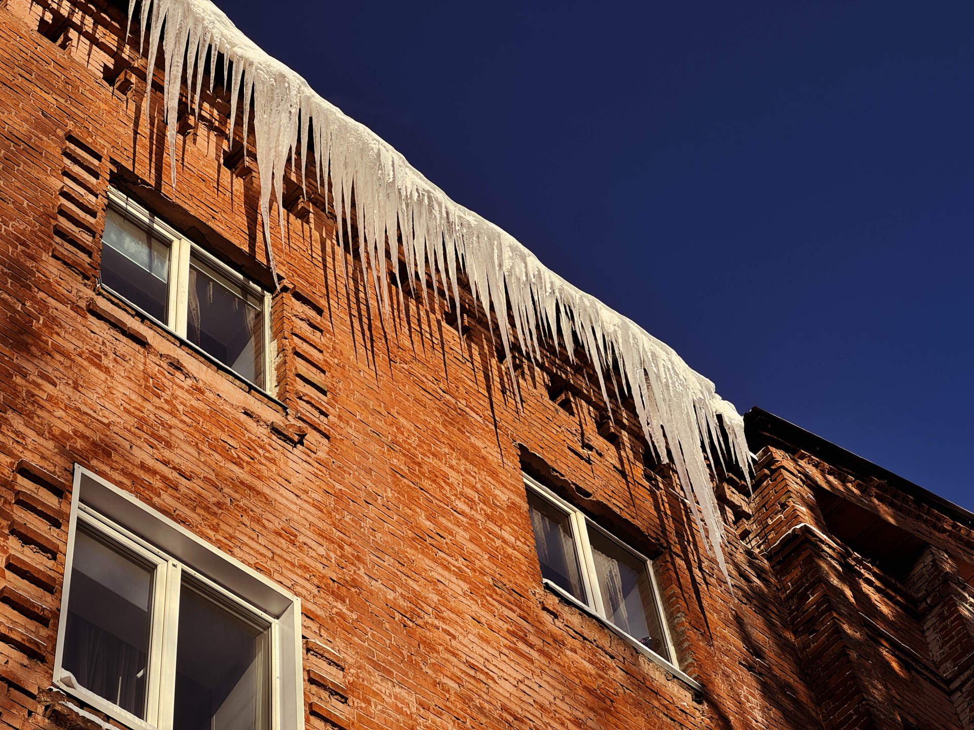 Поднимаем головы и замечаем гирлянду из очень опасных сосулек.