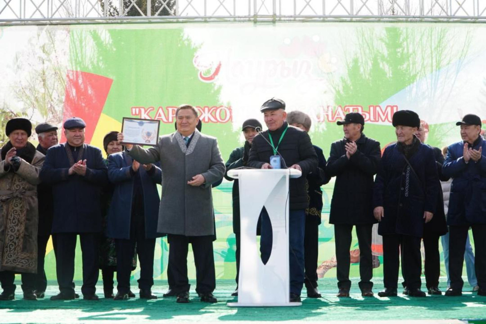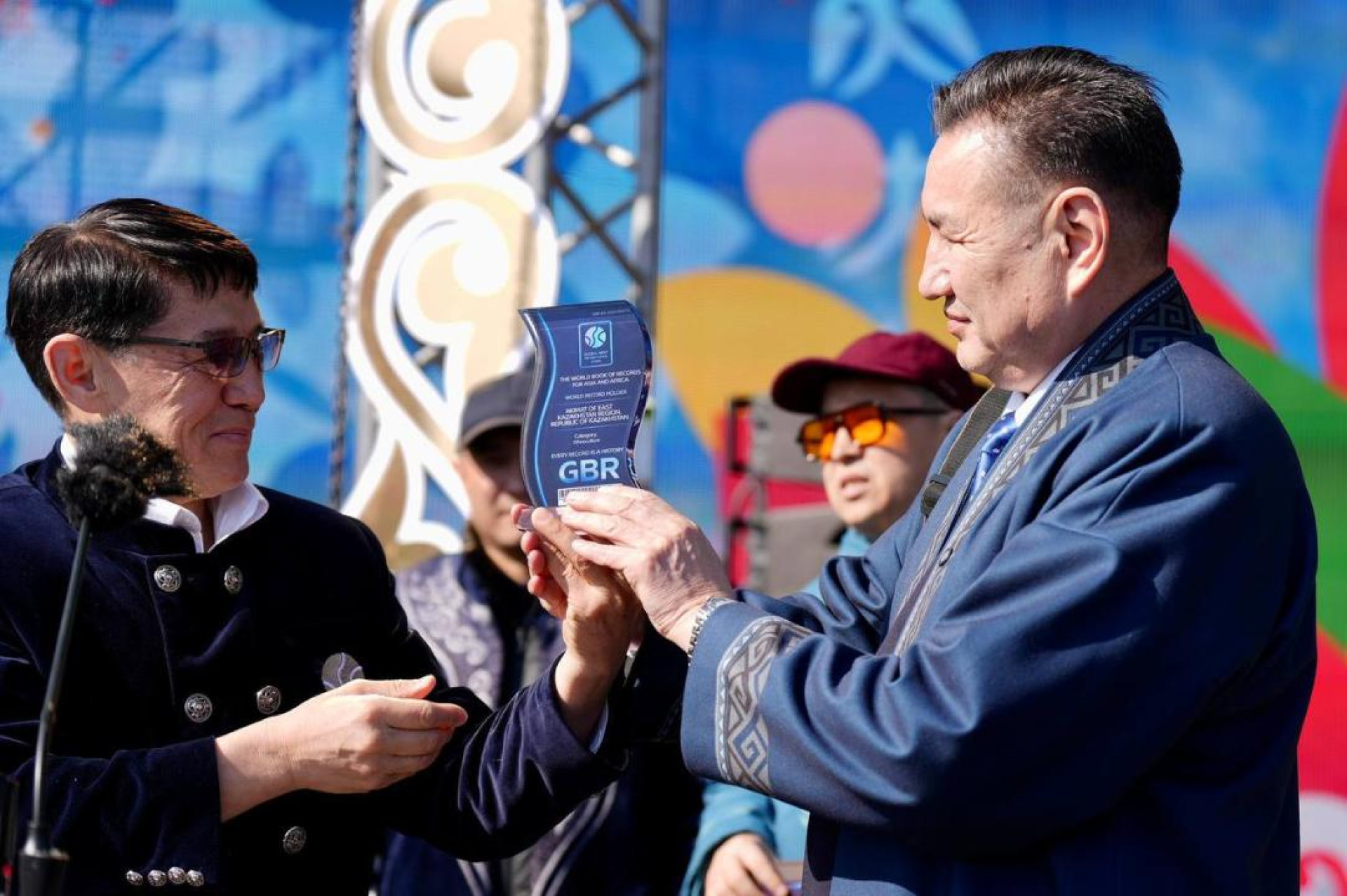 После грандиозного выступления Сактаганов с гордостью принимал награду Книги рекордов Гиннесса от имени всех исполнителей.