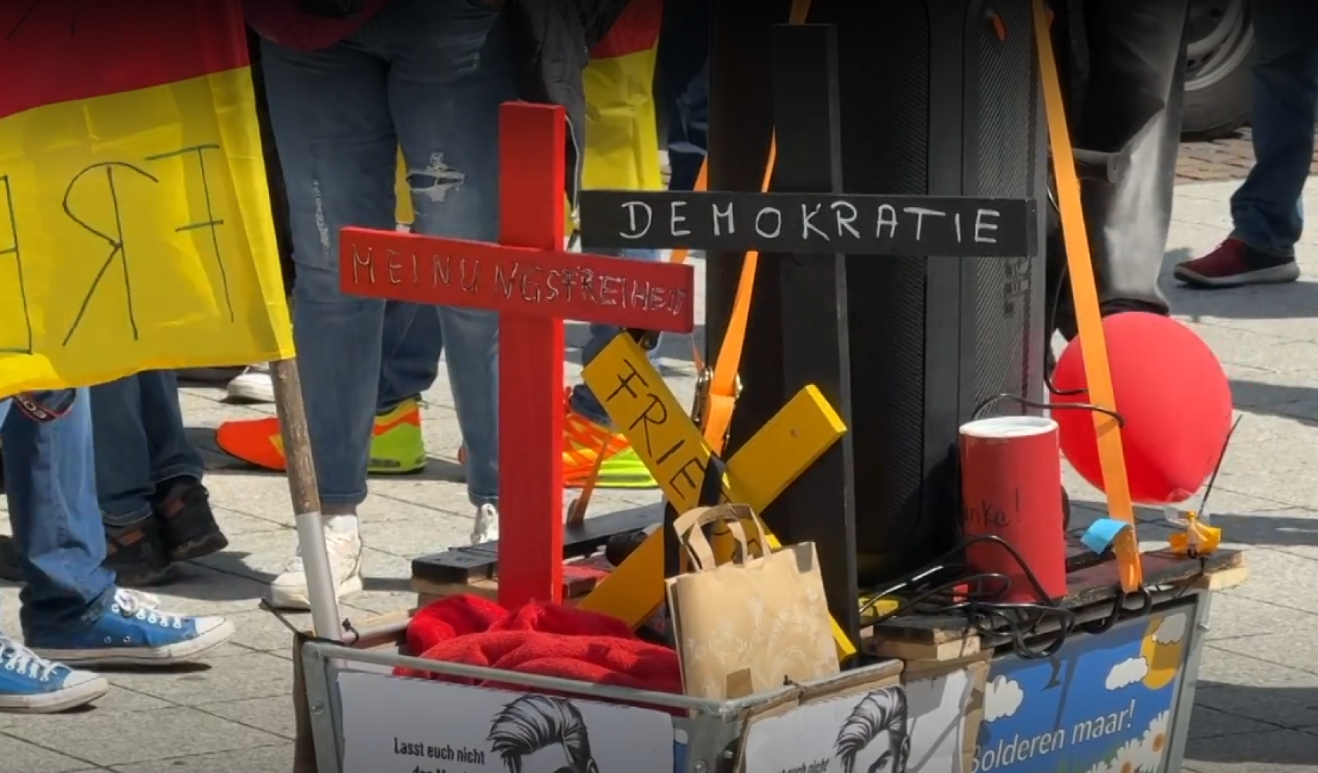 Акция правого движения "Вместе за Германию" (Gemeinsam für Deutschland) в городах ФРГ против помощи Украине, апрель 2025 года. Стоп-кадр из видео