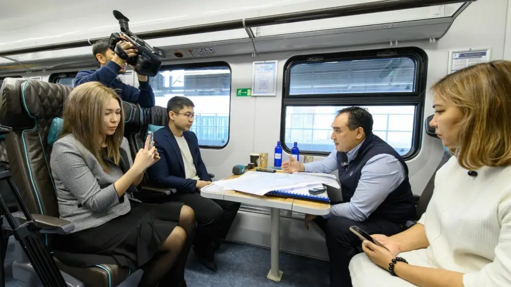В электропоезде Burabay Express состоялась медиавстреча с управляющим директором по строительству АО "НК "Қазақстан темір жолы" Маратом Искалиевым. Во время поездки обсуждались вопросы реализации инфраструктурных проектов КТЖ и программы по модернизации вокзалов.