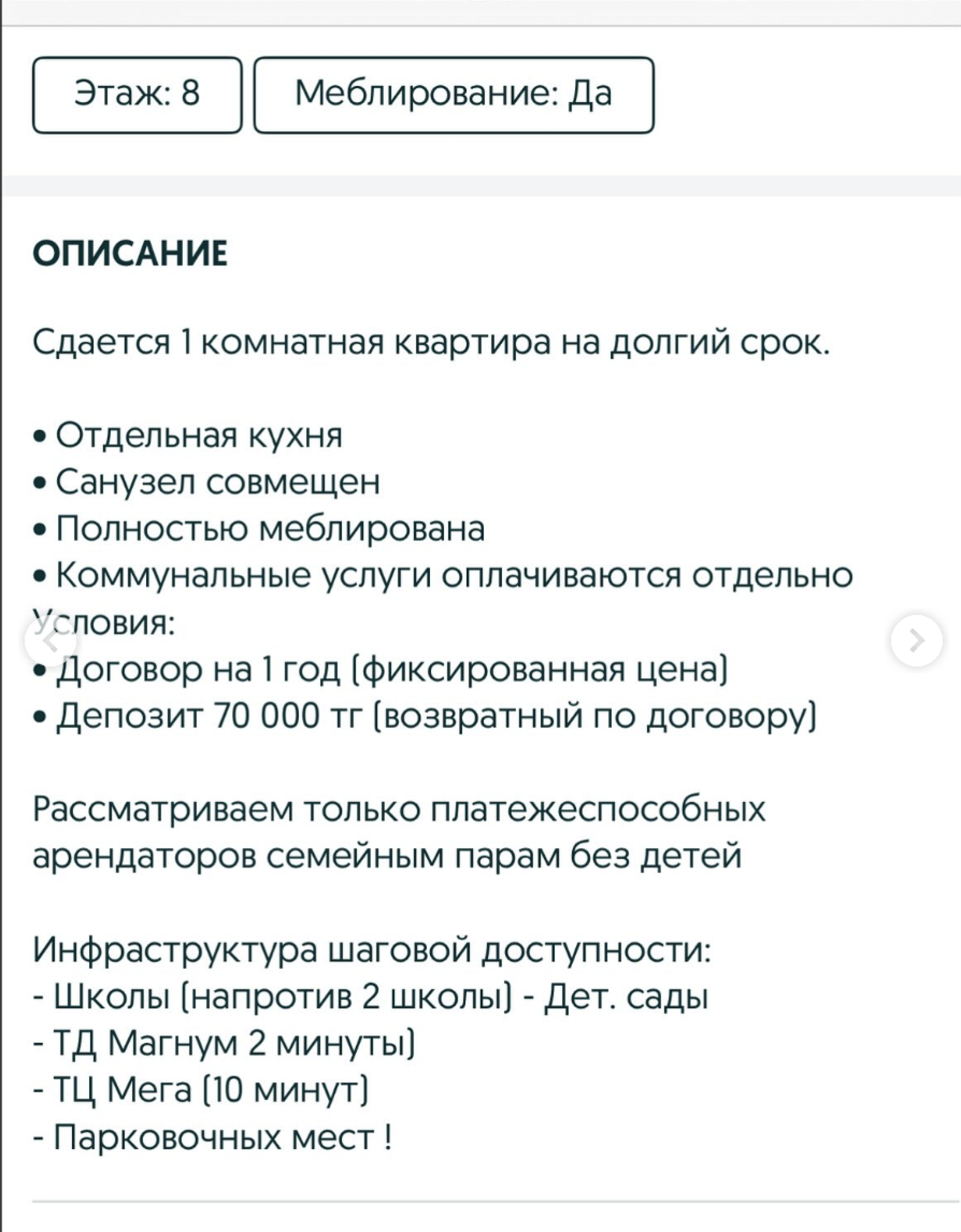 • Арендодатели, в свою очередь, боятся ущерба имуществу, конфликтов и неплатежей, поэтому требуют крупные депозиты и нередко отказывают семьям с детьми и владельцам животных.