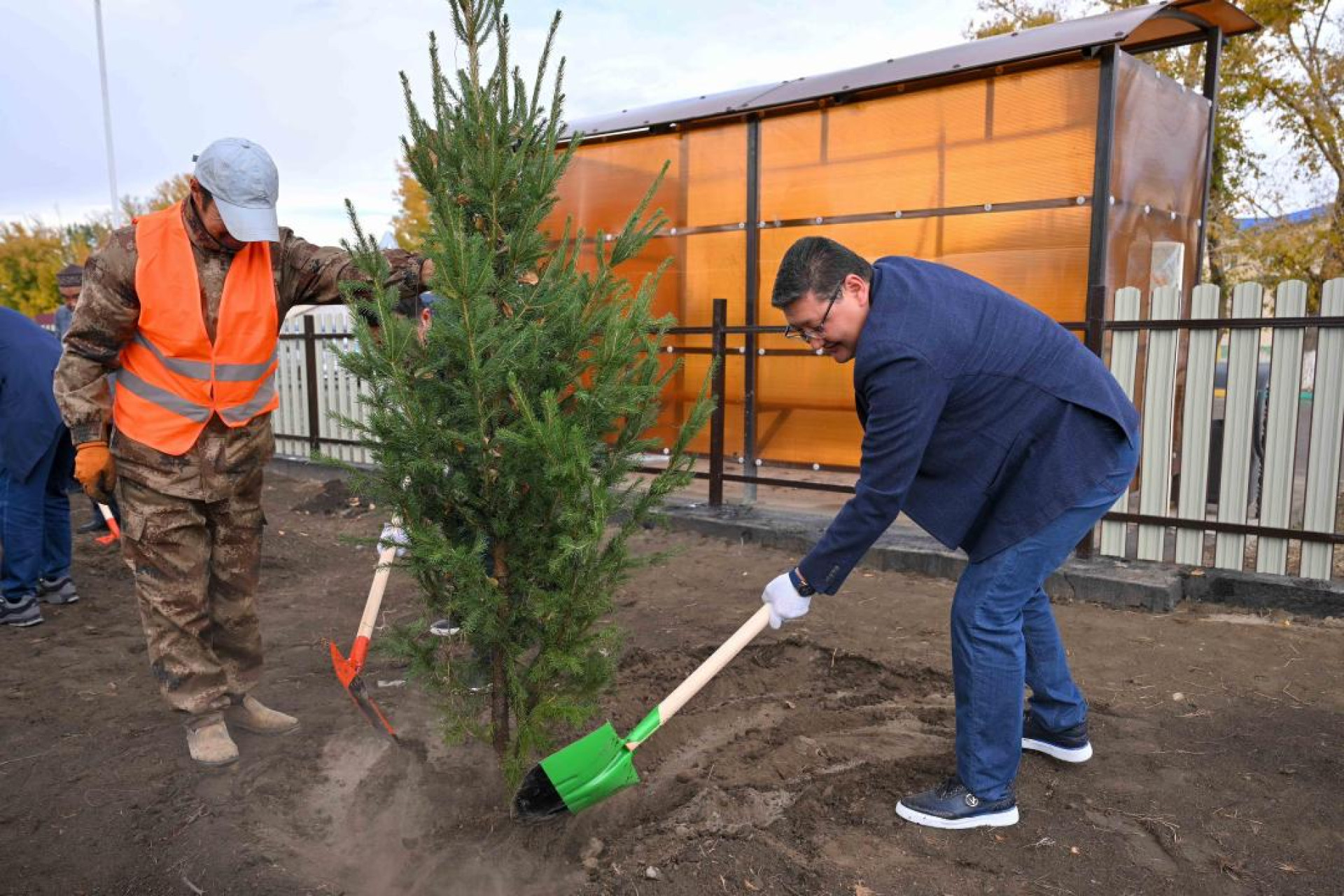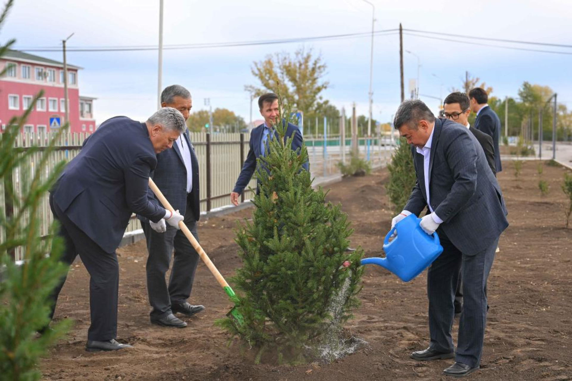 Своим примером Уали, по всей вероятности, вдохновил коллег. В результате группа чиновников активно засаживала будущую аллею ёлочками, несмотря на то что одеты они были явно не по случаю (в отличие от самого акима):