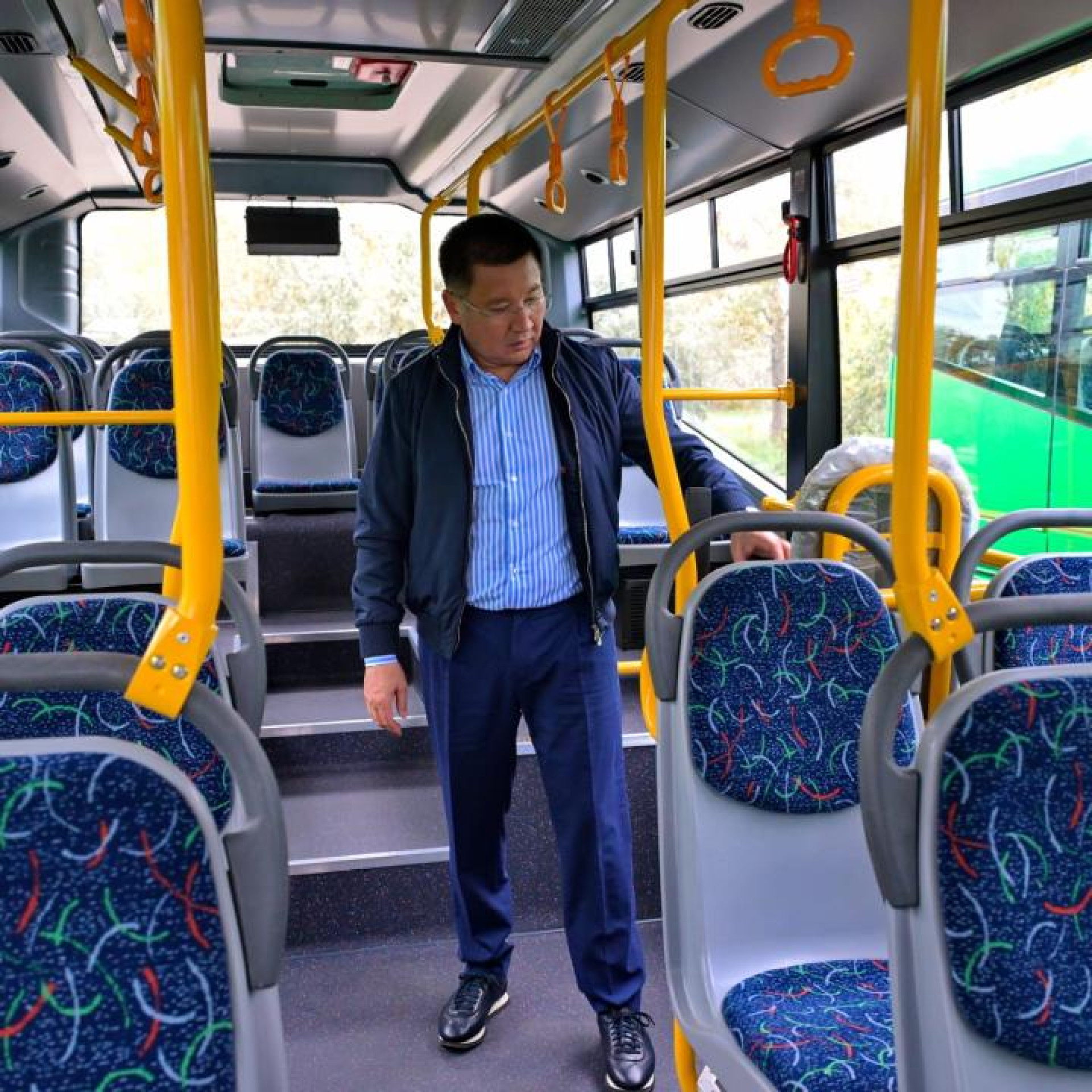 Первым делом Асаин Байханов посетил стоянку общественного транспорта, чтобы лично оценить состояние автобусов, которые он ранее поручал обновить: