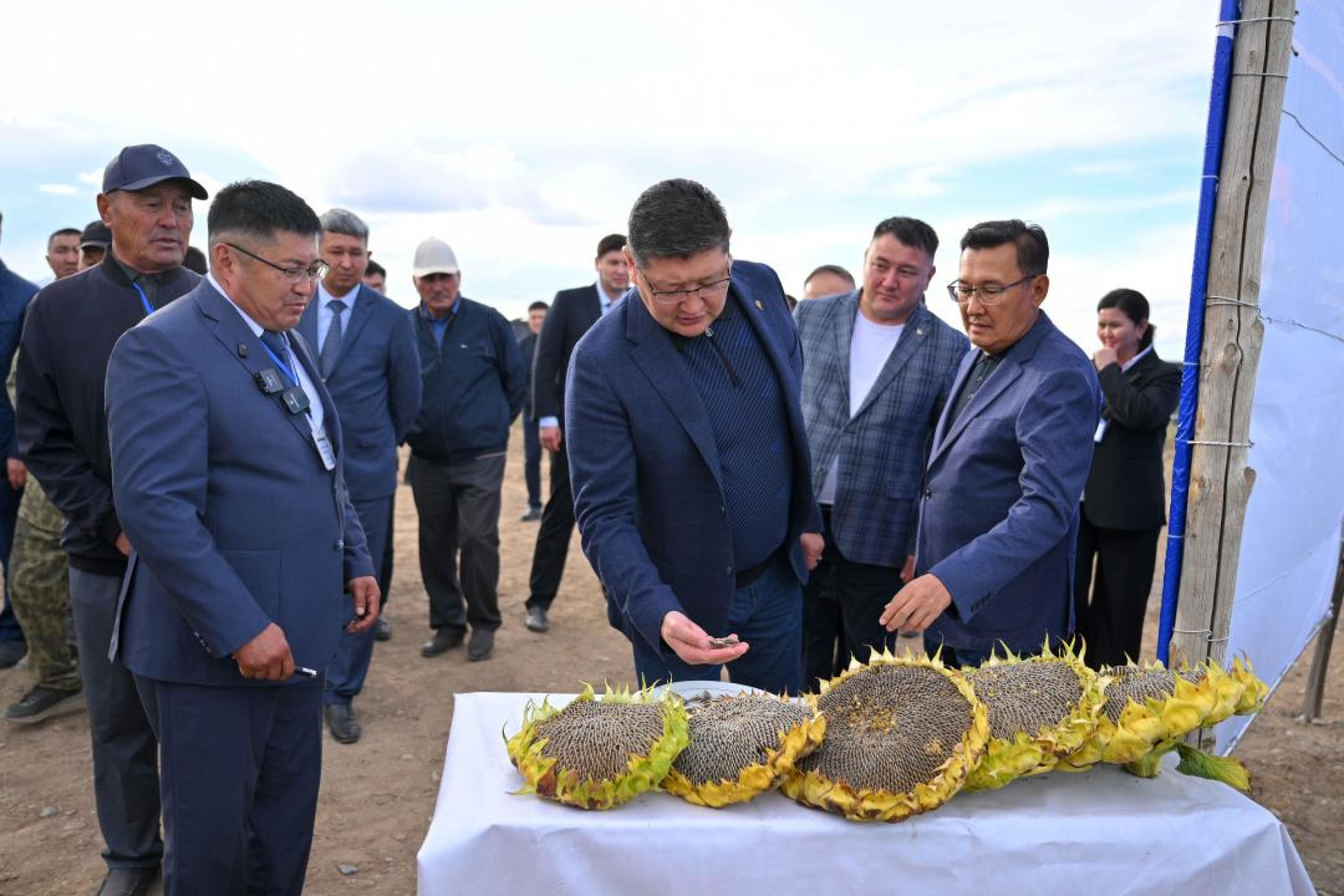 А во-вторых, он, как водится, лично проинспектировал плоды этого чудесного цветка, а именно — семечки. Не знаем, насколько хорошо чиновник в них разбирается. В сообщениях акимата не было снимков, на которых Уали их щёлкает.