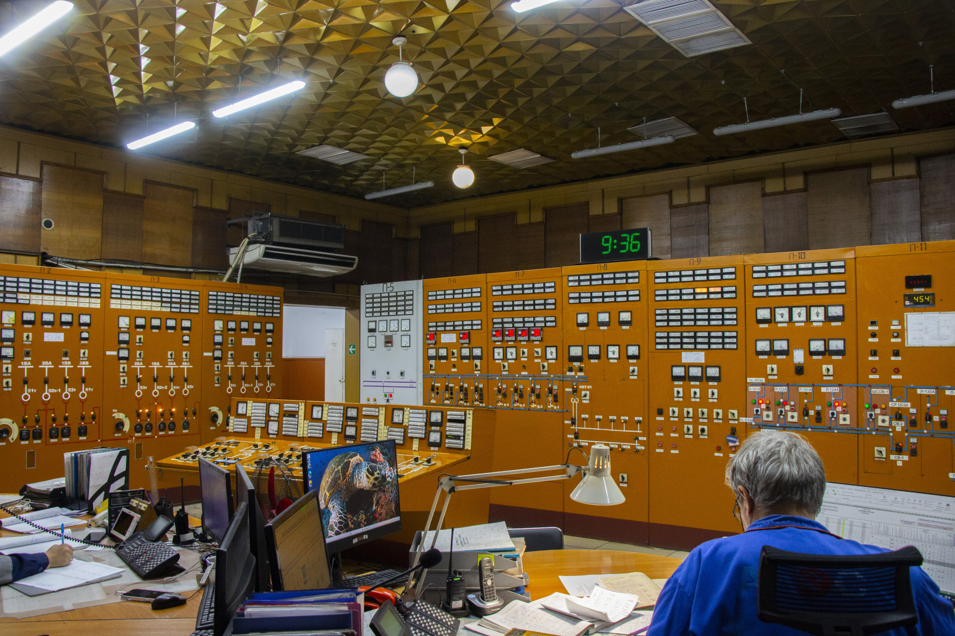 В следующей комнате диспетчеры следят за котлами и турбинами — за каждую из них отвечает свой щит управления: