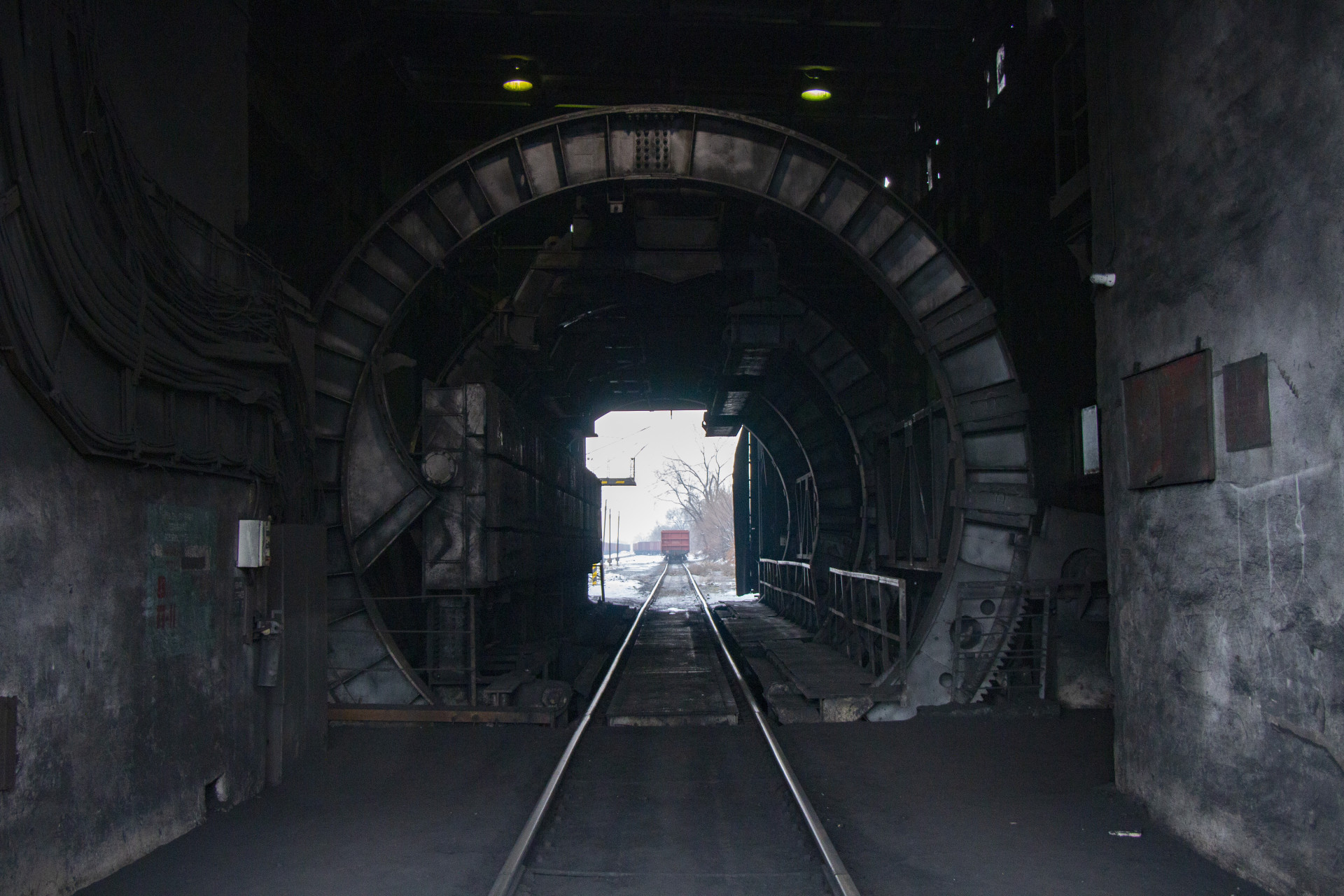 Уголь обычно прибывает сюда после обеда. На переворот одного вагона уходит около двух-трёх минут. Когда уголь высыпают, поднимается пыль, поэтому рабочие используют специальные средства защиты.
