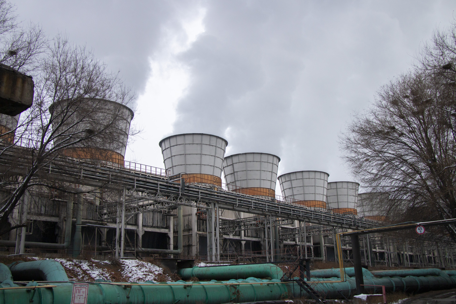 Чуть дальше от ОРУ мы видим 12 градирен ― именно их горожане часто путают с котлами и думают, что из них идёт дым. Но нам объясняют, что это пар.