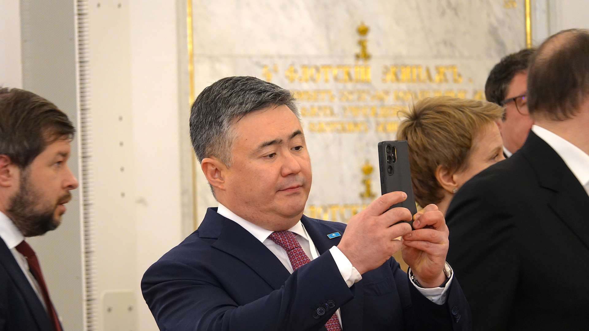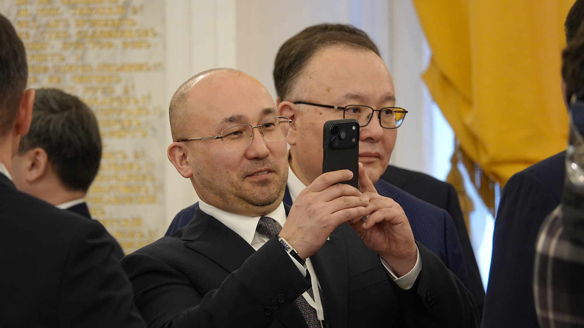 Министр энергетики Казахстана Ерлан Аккенженов тем временем тоже не скрывает интереса — поднимает телефон и делает снимок. Судя по взгляду, интерьер действительно произвёл впечатление.
